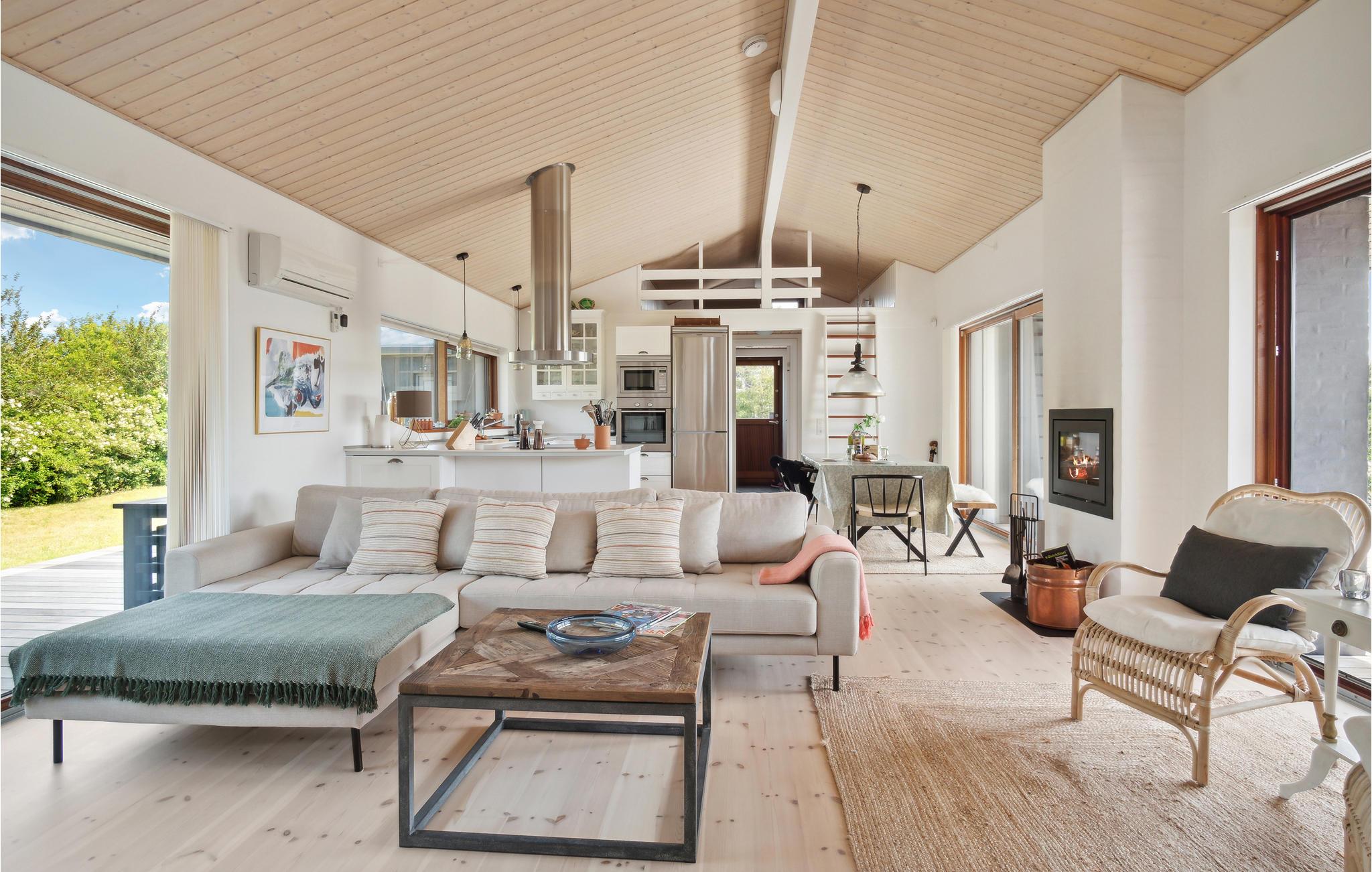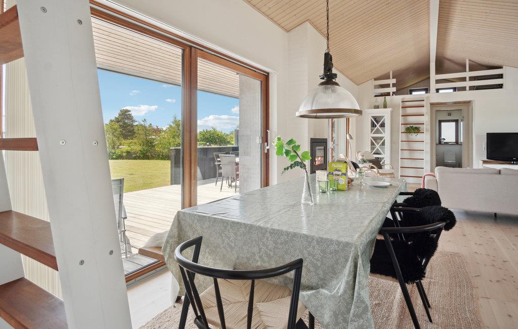 Leder I efter det ideelle feriested i Kelstrup Strand, hvor alle familiemedlemmer kan koble af? Så er I kommet til det rette sted! Dette indbydende hus med en lys og let atmosfære giver jer masser af plads til hygge og sjove aktiviteter. Den åbne stue med høje lofter, store vinduer og en naturlig lysgennemstrømning bliver det centrale mødested for familien. Særligt den store sofa med den brede chaiselong vil med sikkerhed vække begejstring. Nyd varmen fra brændeovnen på en kølig dag eller aften og spil kort ved spisebordet. Det bliver en ren fornøjelse at dyste i madlavning i det moderne køkken. De fine retter kan I nyde på en af terrasserne. Gå ud i den dejlige have, spred armene ud, luk øjnene, hør børnenes latter og mærk følelsen af ferielykke. Om lidt spæner børnene til sandstranden.