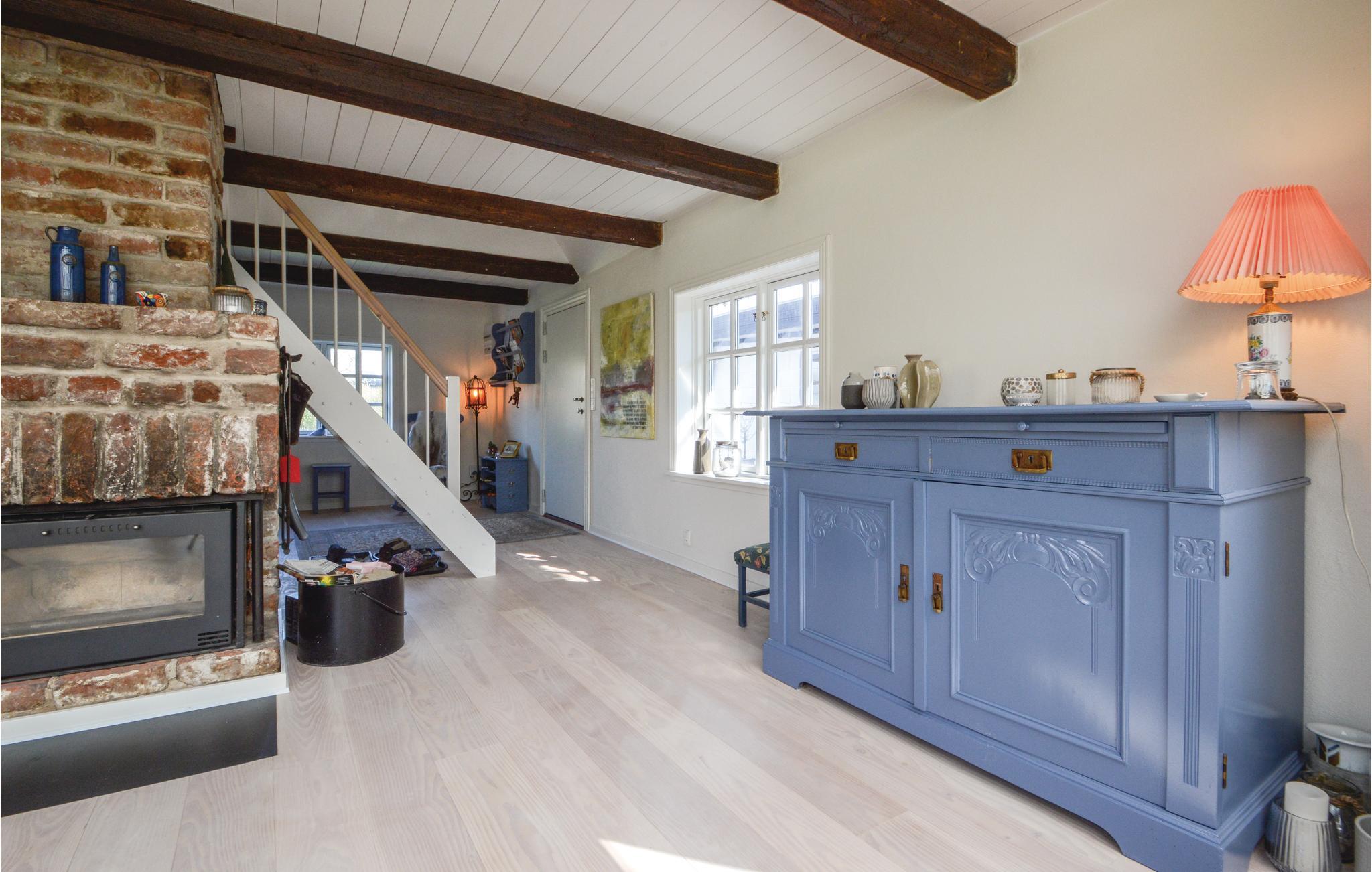 Når I ankommer, træder I ind i et nænsomt renoveret feriehus, der er indrettet med pæne møbler, og alt hvad I ellers har behov for til den perfekte ferie. Køkkenet og stuen ligger i åben forbindelse, og de store vinduesflader giver et skønt lysindfald i huset samtidig med, at I har udsyn til den lille plantage udenfor. I stueetagen er der et pænt lille badeværelse, og via trappen har I adgang til de to gode soveværelser, der ligger på første sal. Lad freden komme til jer i disse autentiske omgivelser, nyd lyden fra det knitrende brænde i brændeovnen eller sid ude i haven ved pejsen og lyt til fuglenes fløjten.