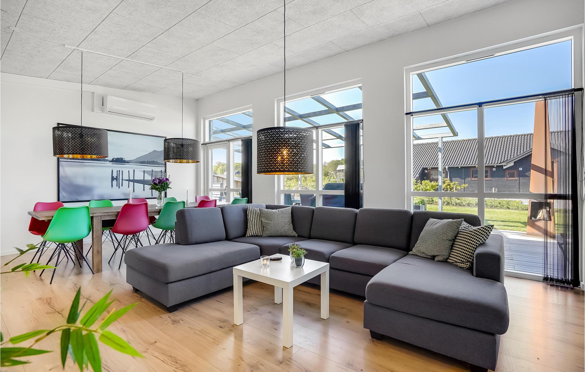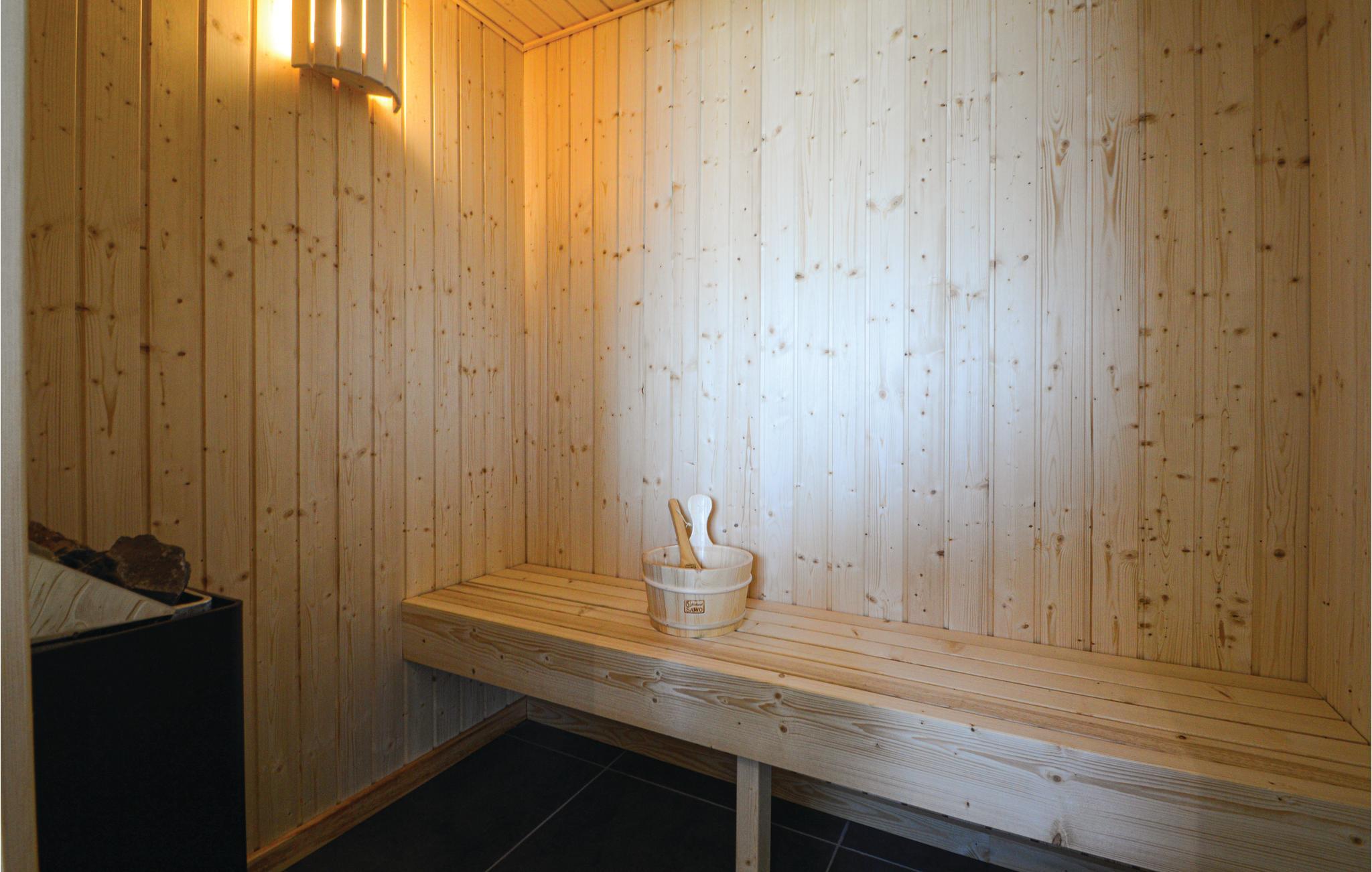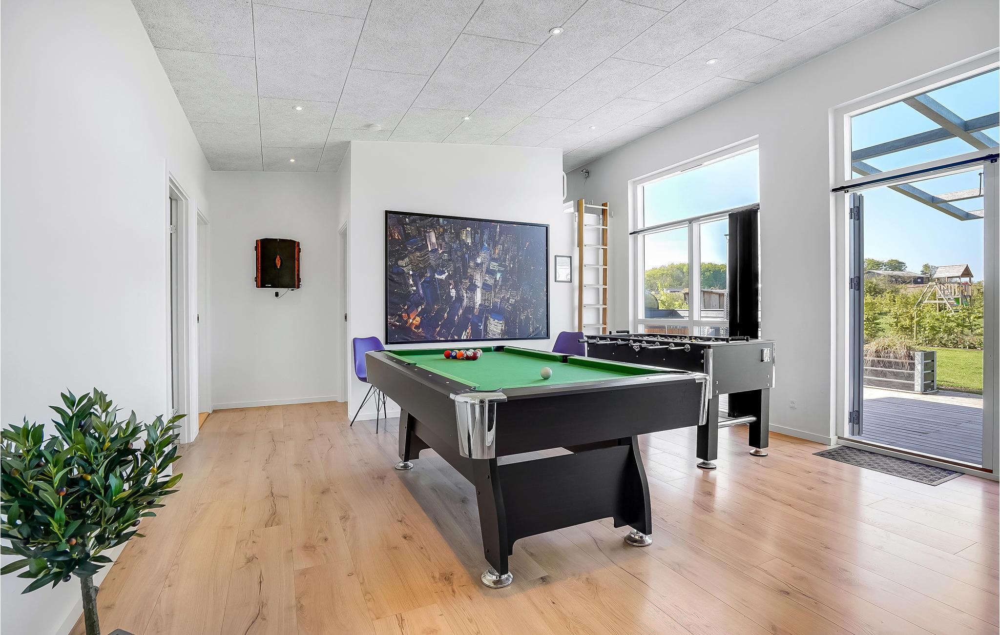 Rummeligt feriehus, der byder på mange aktivitetsmuligheder. Her findes et aktivitetsrum, hvor I har mulighed for at vise jeres færdigheder i bordtennis, pool og bordfodbold. Bagefter kan I slappe af i det dejlige to personers spabad eller nyde varmen i saunaen. Soveværelserne er placeret i hver ende af huset, så de ikke ligger op mod hinanden, og huset er derfor velegnet til flere familier. Feriehuset har et stor køkken, der ligger i åben forbindelse med stuen, hvor de store vinduespartier giver et godt lysindfald. På terrassen kan I nyde ferien og slappe af, mens børnene leger i haven. Den nærliggende børnevenlige sandstrand er bestemt til helårsbrug.
