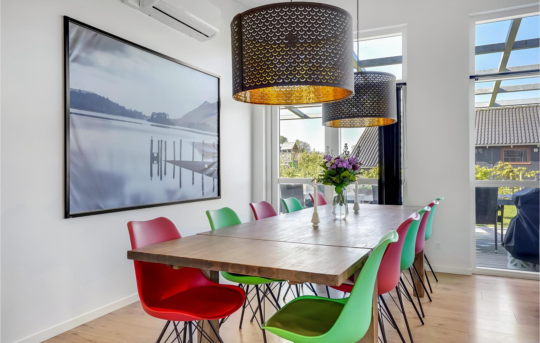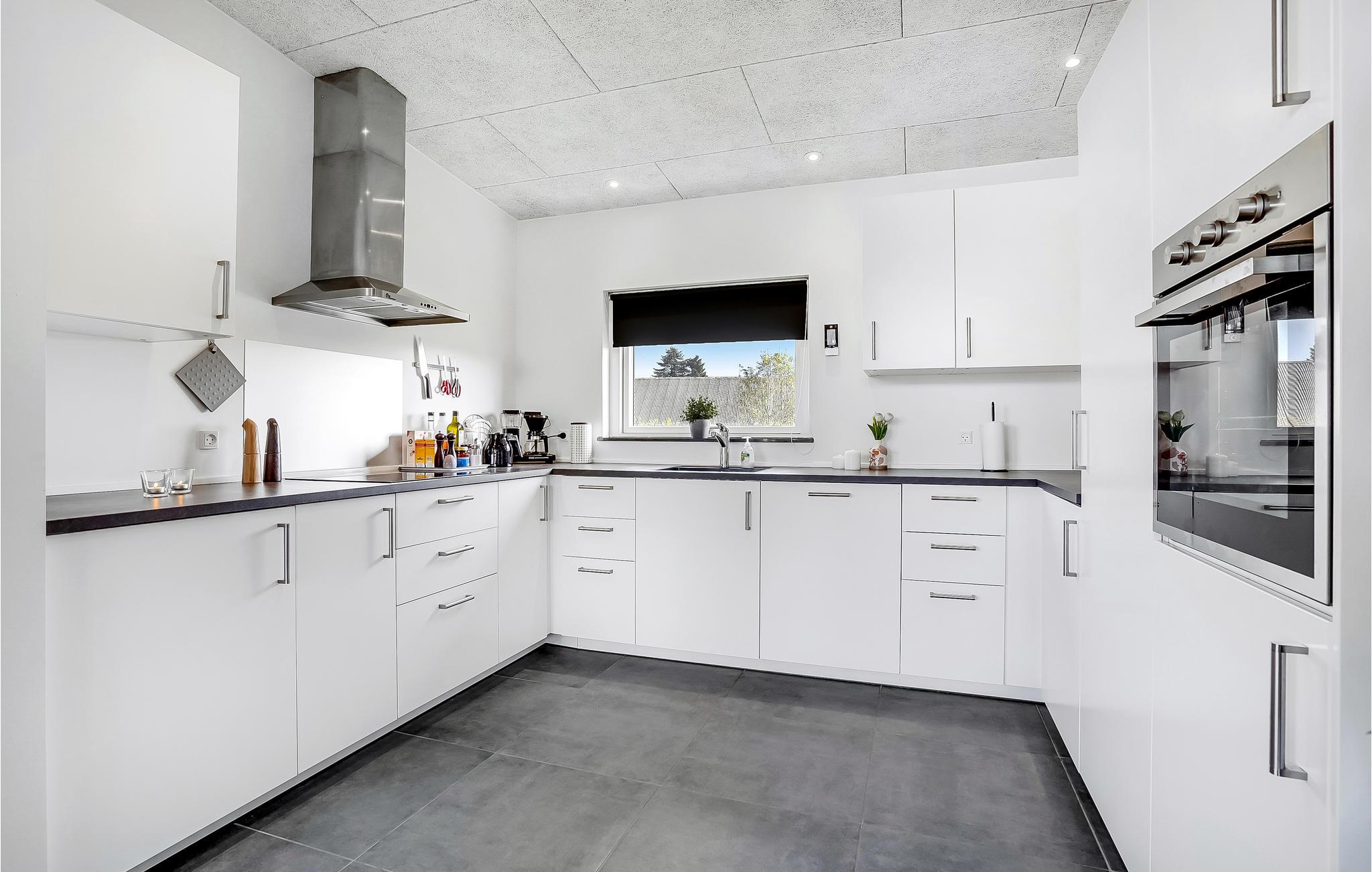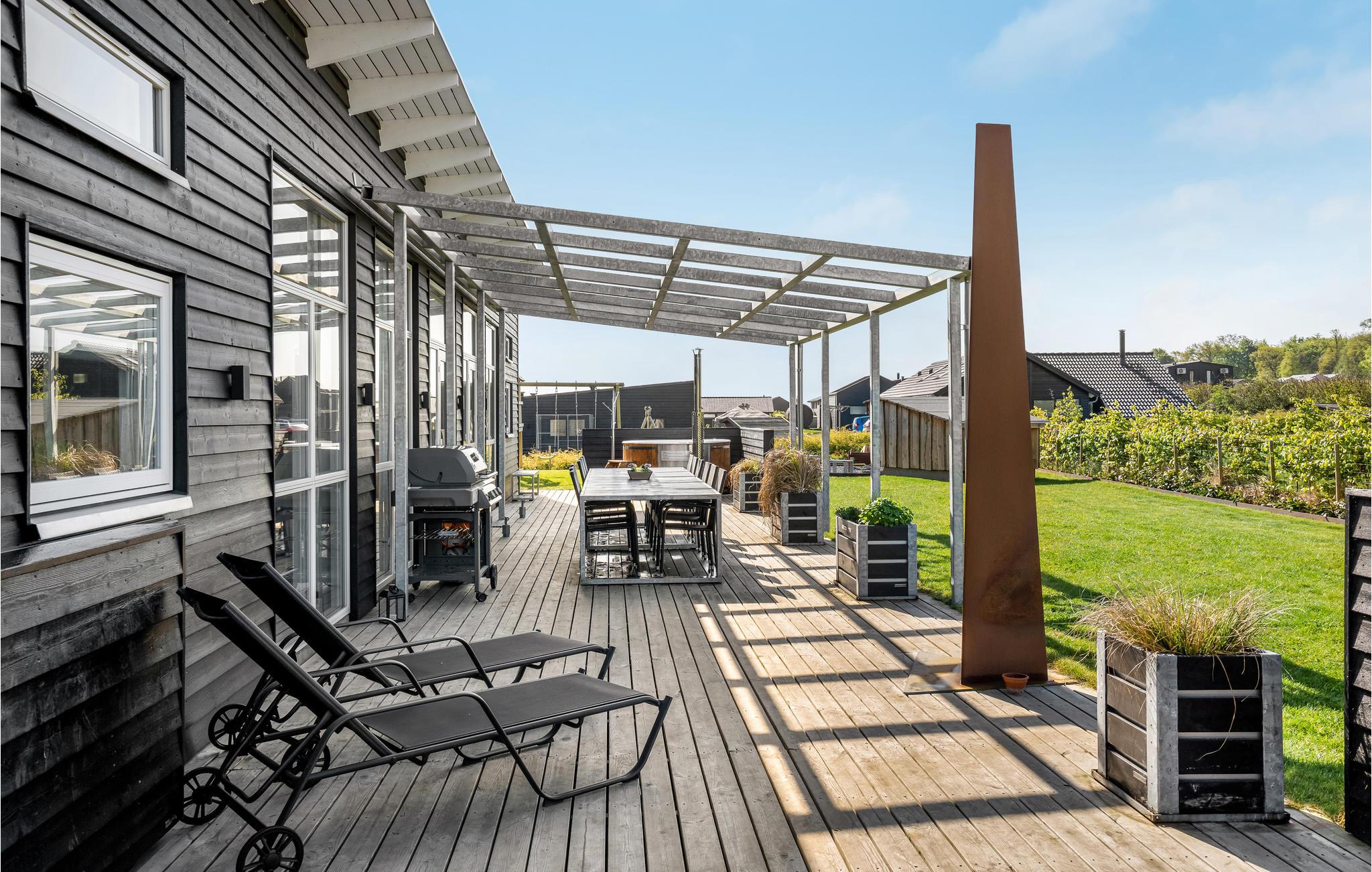 Rummeligt feriehus, der byder på mange aktivitetsmuligheder. Her findes et aktivitetsrum, hvor I har mulighed for at vise jeres færdigheder i bordtennis, pool og bordfodbold. Bagefter kan I slappe af i det dejlige to personers spabad eller nyde varmen i saunaen. Soveværelserne er placeret i hver ende af huset, så de ikke ligger op mod hinanden, og huset er derfor velegnet til flere familier. Feriehuset har et stor køkken, der ligger i åben forbindelse med stuen, hvor de store vinduespartier giver et godt lysindfald. På terrassen kan I nyde ferien og slappe af, mens børnene leger i haven. Den nærliggende børnevenlige sandstrand er bestemt til helårsbrug.