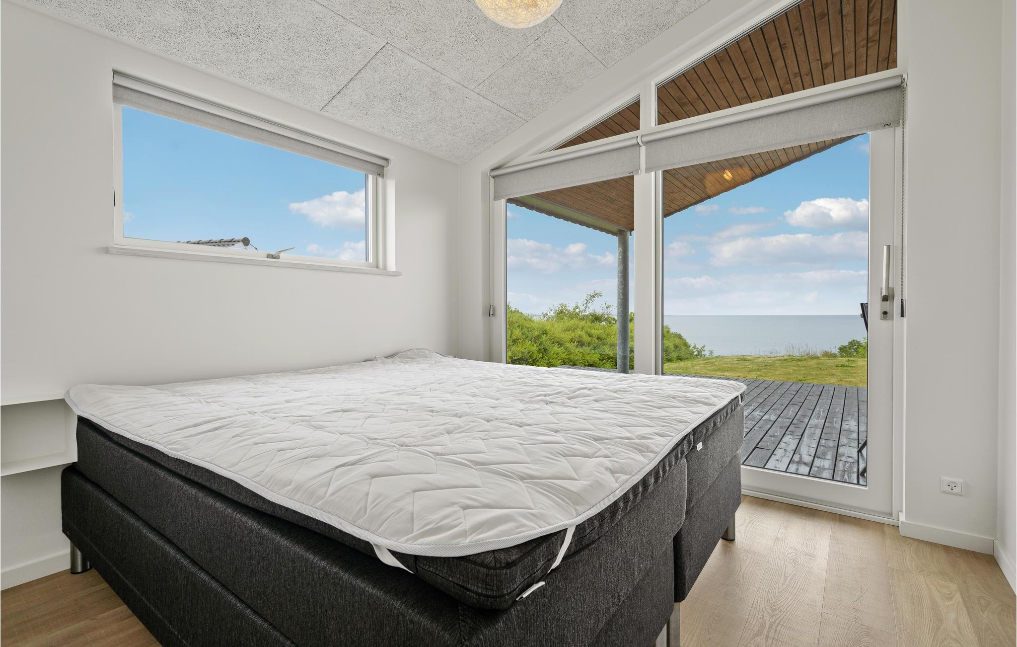 Leder I efter det perfekte feriehus i Kelstrup Strand, hvor alle familiemedlemmer kan koble af? Så har I fundet det helt rette sted! Dette indbydende hus med en lys og let atmosfære giver jer masser af plads til hyggeligt samvær med sjove aktiviteter. Den åbne stue med høje lofter, store panoramavinduer og en exceptionel lysgennemstrømning bliver det centrale mødested for familien. Særligt den store sofa vil med sikkerhed vække begejstring. Nyd varmen fra brændeovnen på en kølig dag eller aften og spil kort ved spisebordet. Det bliver en sand fornøjelse at dyste i madlavning i det moderne køkken. De fine retter kan I nyde på en af terrasserne. Hvis I vil slappe af, er der et boblebad og en sauna til rådighed. Gå ud i den dejlige have med havudsigt, spred armene ud, luk øjnene, hør børnenes latter og mærk følelsen af ferielykke. Lav snobrød over flammerne i bålfadet om aftenen. Fra huset kan børnene spæne ned til den kilometerlange sandstrand, som er et paradis for både store og små. Her er det også muligt at fiske.
