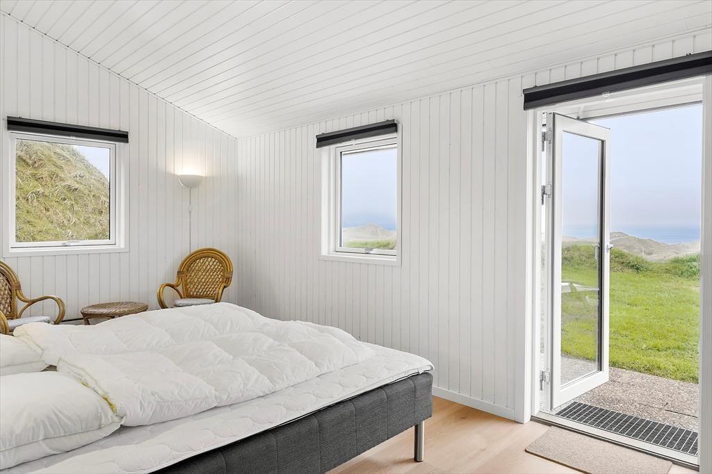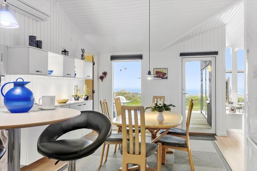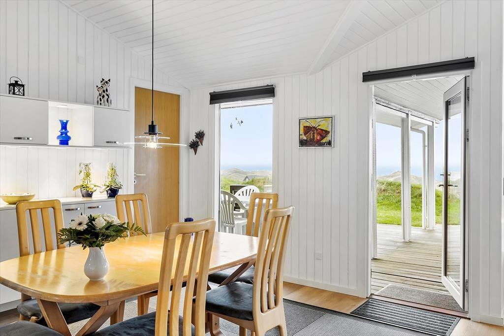 På en højliggende klitgrund i Kettrup Bjerges smukke klitlandskab finder I dette store og velindrettede sommerhus, der nemt kan rumme 10 personer. Her får I en skøn ramme om ferielivet, for huset har en lys og let atmosfære, og gennem vinduerne kan I nyde den imponerende udsigt over kystomgivelserne og Vesterhavet.