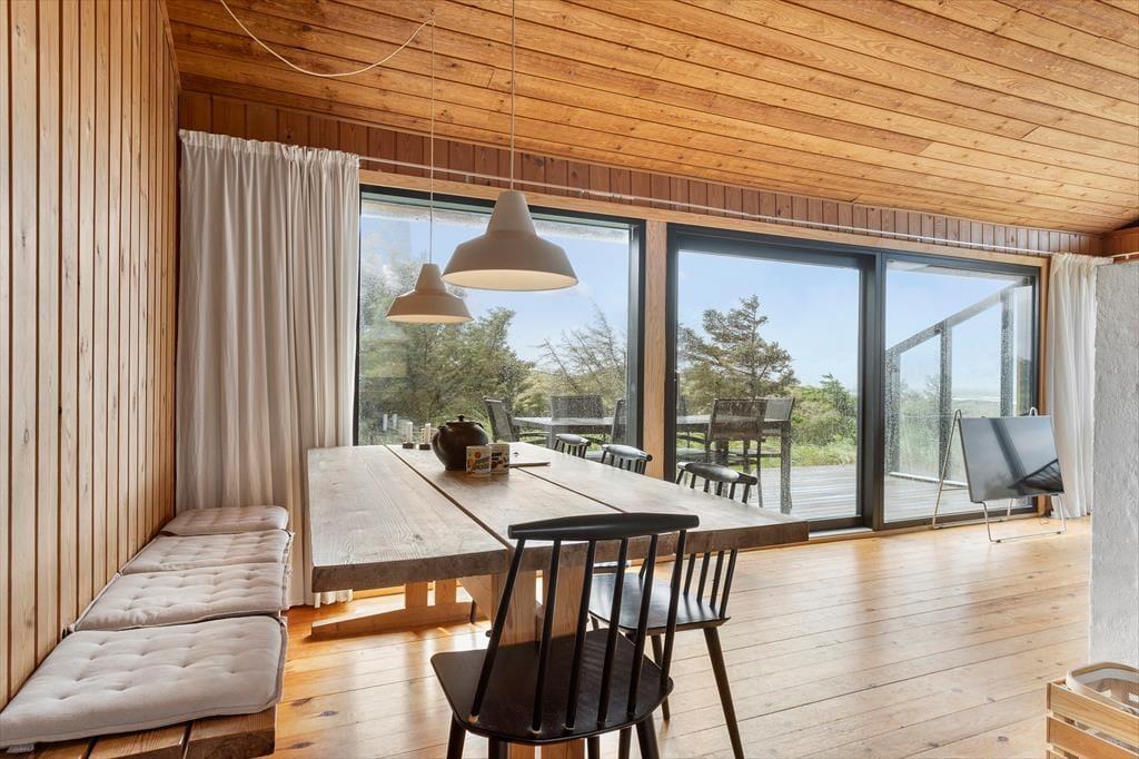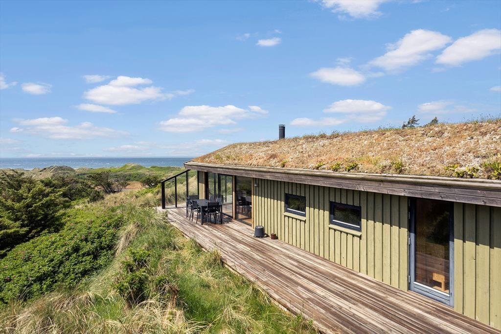 Når solen skinner over Kettrup Bjerge, flytter ferien automatisk udenfor. På den ugenerede grund kan du nyde en ro, der næsten er sjælden at finde – kun afbrudt af fuglesang og lyden af vinden over klitlandskabet. Der er masser af læfulde kroge og solrige pletter at slå sig ned i, hvad enten du er til en rolig stund i liggestolen med en god bog eller et glas vin i aftensolen med panoramaudsigt over Vesterhavet. Her er det let at finde balancen – og føle sig langt væk fra hverdagens tempo. Når mørket falder på, og stjernerne tændes over klitterne, er der næsten noget magisk over stilheden og udsynet, der rækker hele vejen til horisonten.