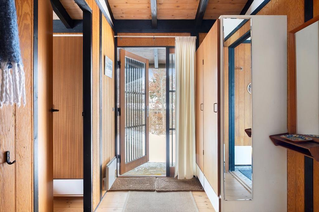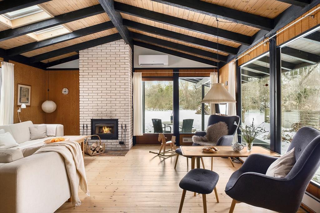 På en stille vej i Kikhavn ligger dette sommerhus og venter på jer, der trænger til at sætte tempoet ned. Allerede når I træder ind, mærker I den ægte sommerhusstemning. Træpanelerne langs væggene og de blotlagte spær i loftet giver rummet varme og karakter, mens loftshøjden skaber en dejlig fornemmelse af rummelighed. Køkken, spiseplads og opholdsstue ligger i åben forbindelse, så familien kan være sammen – også når der dækkes bord, læses godnathistorier eller bygges med klodser på gulvet.