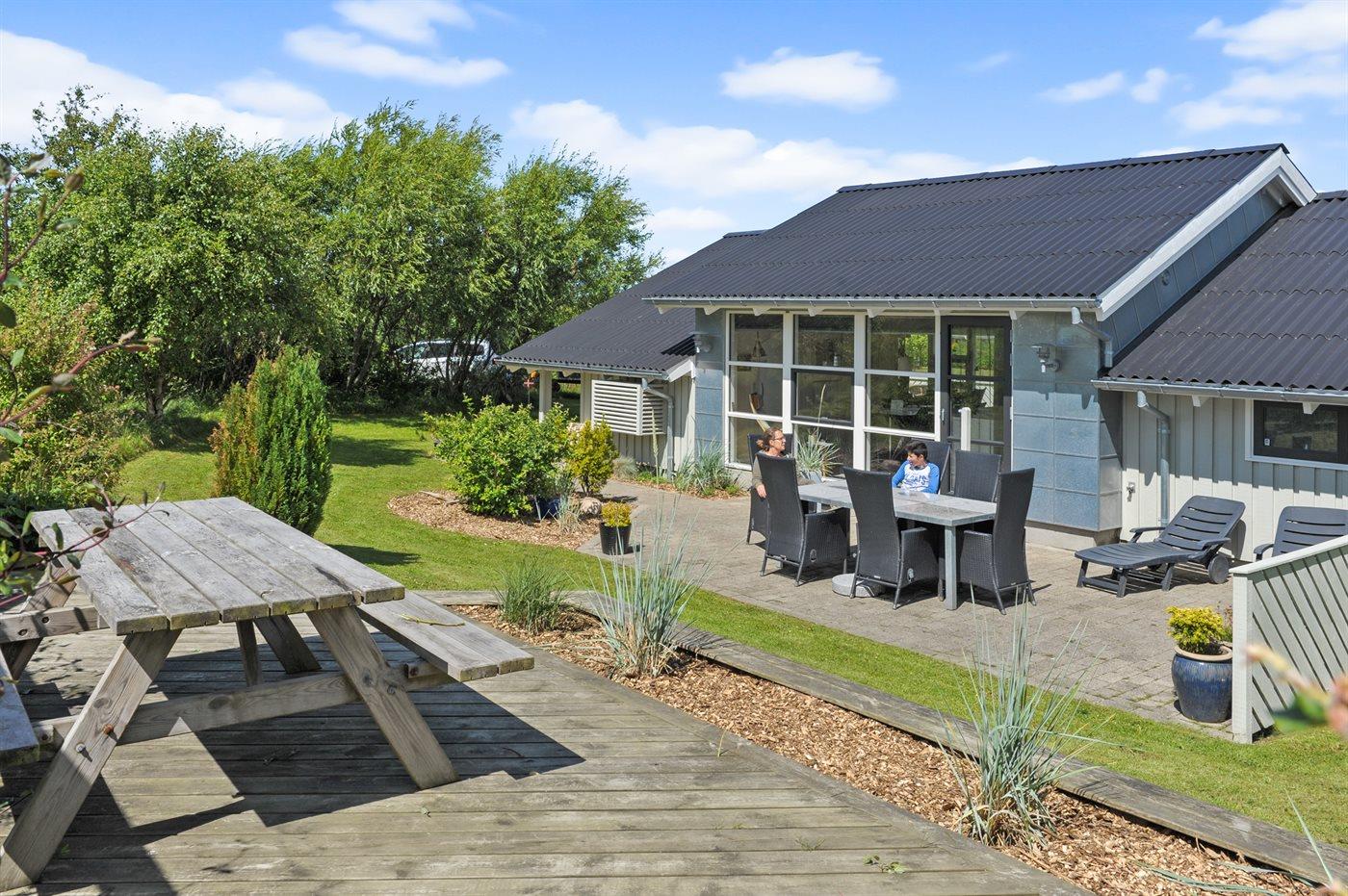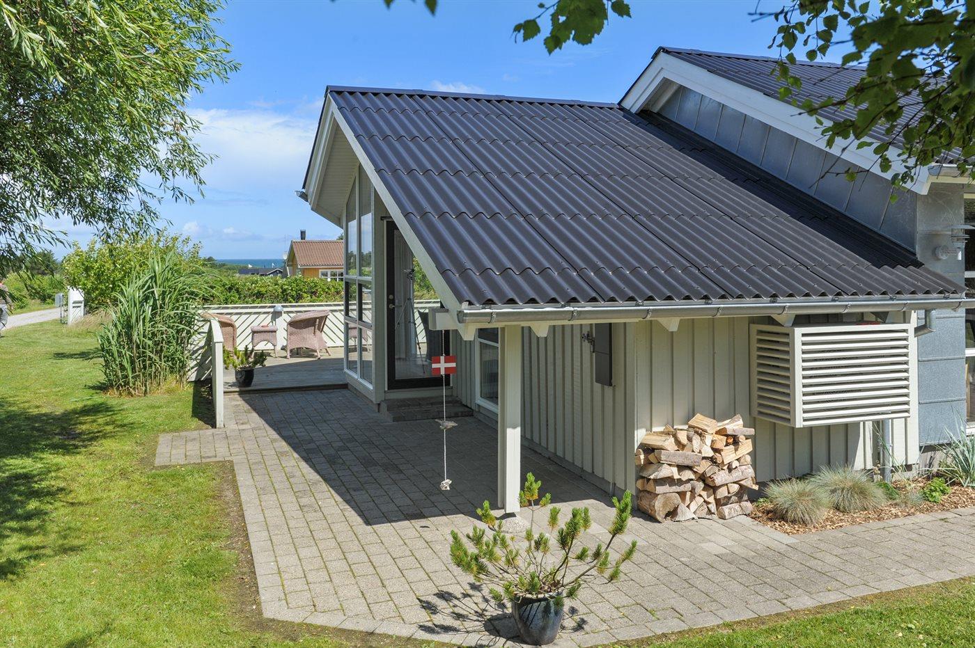 Ferieboligen er beliggende på en 1250 m² stor naturgrund. Der er 625 m til havet. Nærmeste forretning er beliggende i en afstand af 4000 m. Til ferieboligen hører 70 m² terrasseareal. Desuden er der 8 m² overdækket terrasse. Der er redskabsrum. Gynge. Sandkasse. Grill til rådighed. Der er installeret stik til opladning af elbil. CEE stik. Parkering ved ferieboligen.