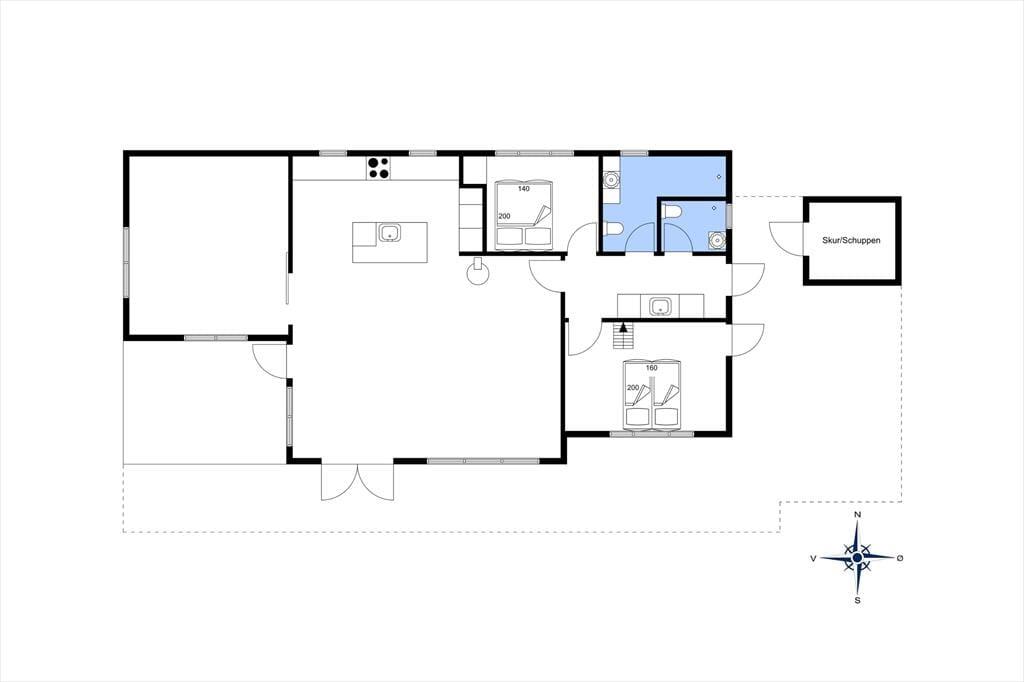 Sommerhuset byder på tre værelser, der alle er af en god størrelse og tilsammen giver sengepladser til seks personer. Entréen er indrettet som et lille bryggers med vaskemaskine, og I får glæde af et rummeligt badeværelse med bruseniche og gulvvarme såvel som et mindre brusebadeværelse. Resten af huset består af en åben opholdsafdeling, hvor køkkenet og stuen glider i ét. Køkkenet er lækkert indrettet med lyse elementer, opvaskemaskine og en køkkenø, hvor I kan være sammen om at snitte og hakke grøntsagerne. Brændeovnen luner, mens store vinduespartier giver et skønt, gennemstrømmende lys, og fra spisebordet og sofaarrangementet kan I nyde en smuk udsigt til omgivelsernes marehalm og lyngklædte bakker. Her er god plads til at spille brætspil eller slappe af under et lunt tæppe med varm te og en god bog, og med wi-fi samt Smart-TV med parabol og Chromecast er den digitale underholdning sikret.