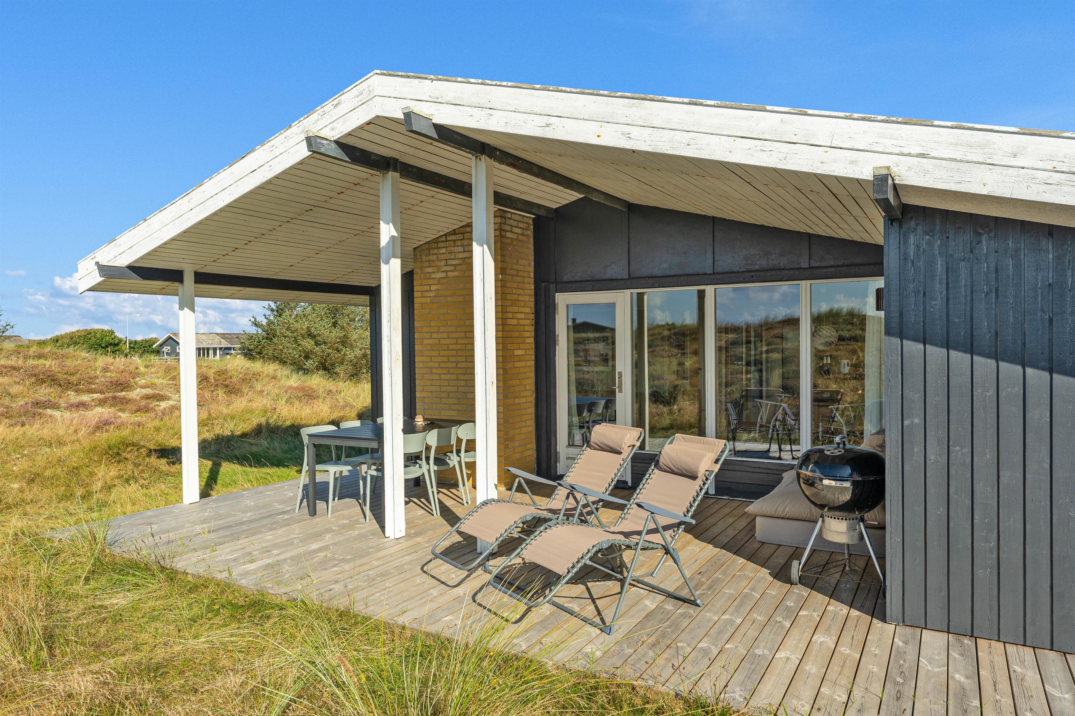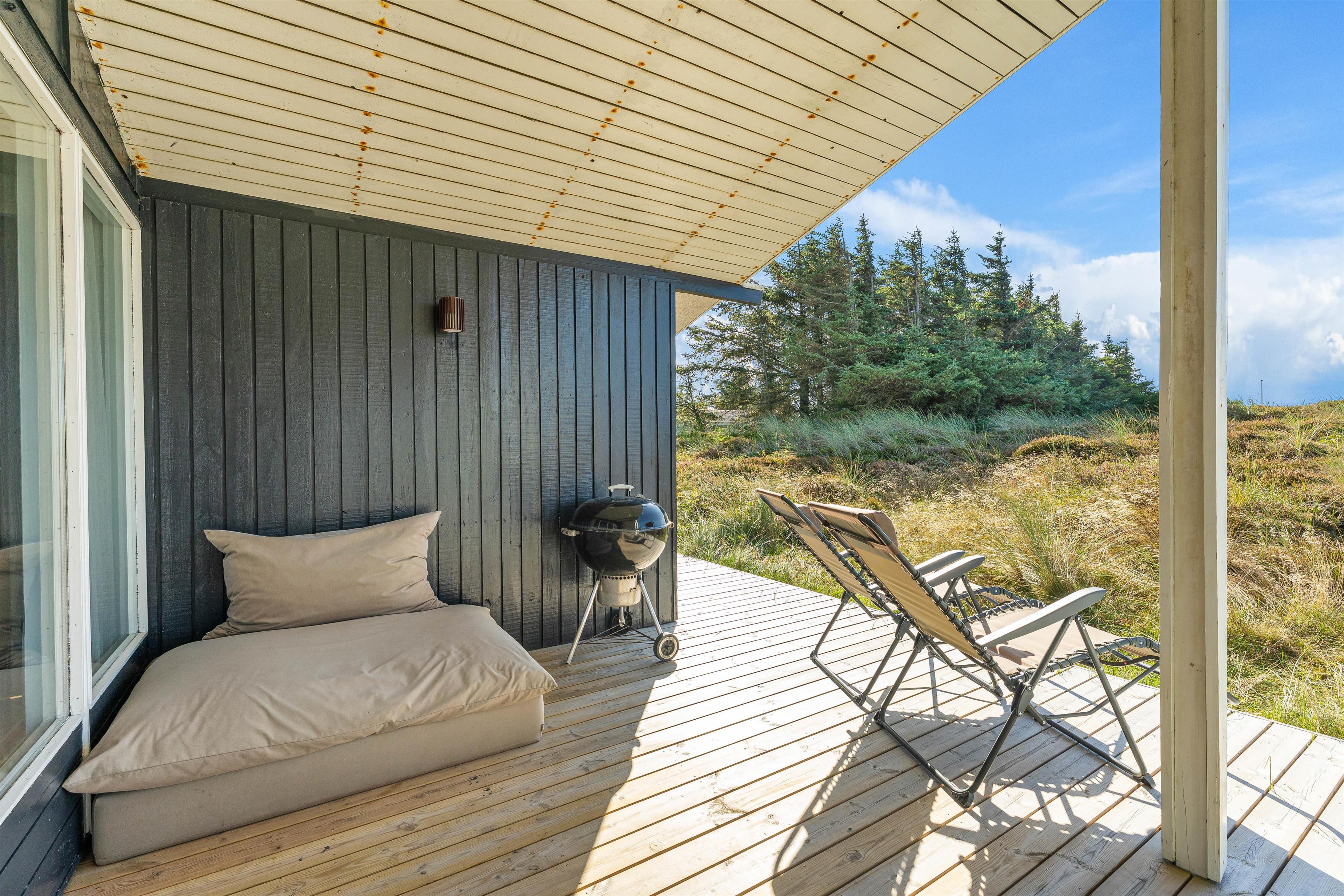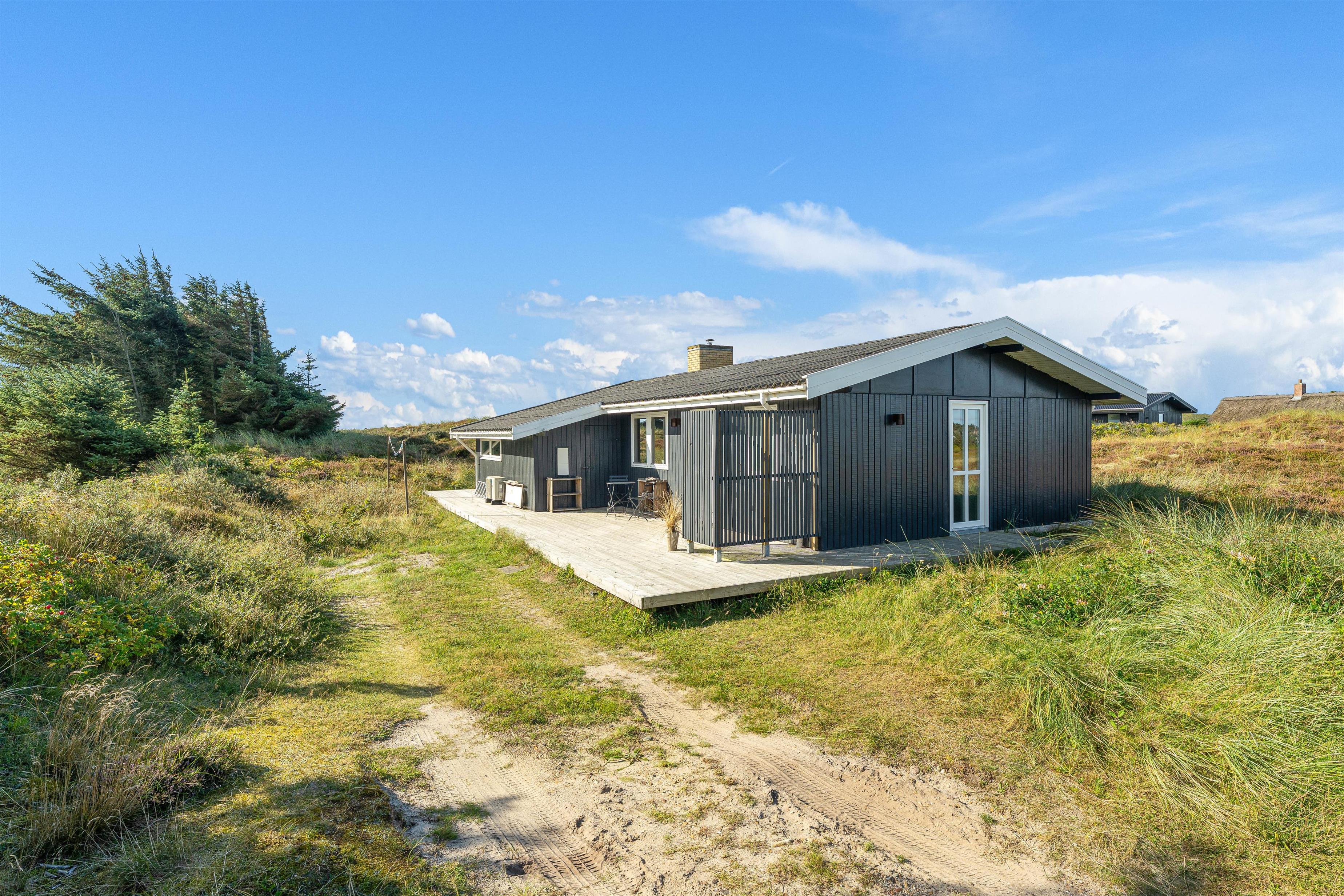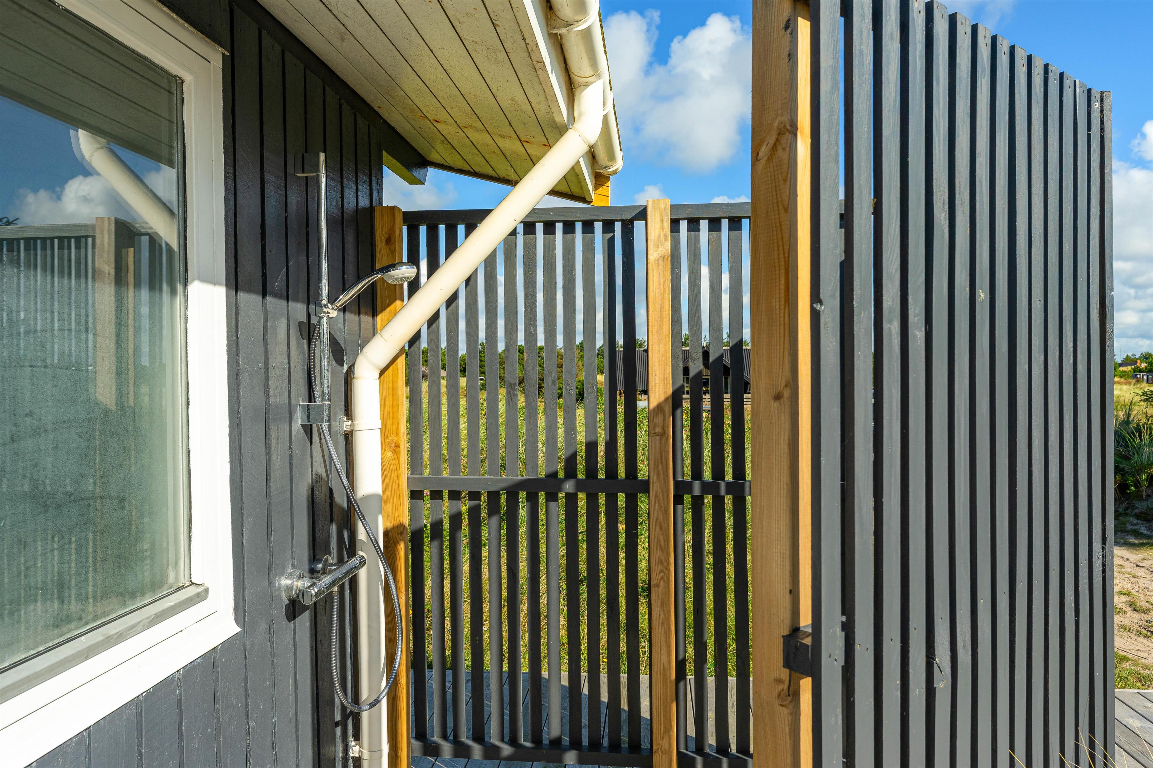 Udenfor finder I en hyggelig terrasse, som er delvist overdækket. Her er der plads til at nyde den skønne vesterhavsluft og natur, imens der bliver slappet af. Derudover er der plads til leg og spil på den skønne naturgrund. Efter en dejlig tur ved stranden kan I skylle sandet af tæerne under udebruseren ved sommerhuset. I skal dog være opmærksomme på, at udebruseren kun er tilgængelig fra april til november.