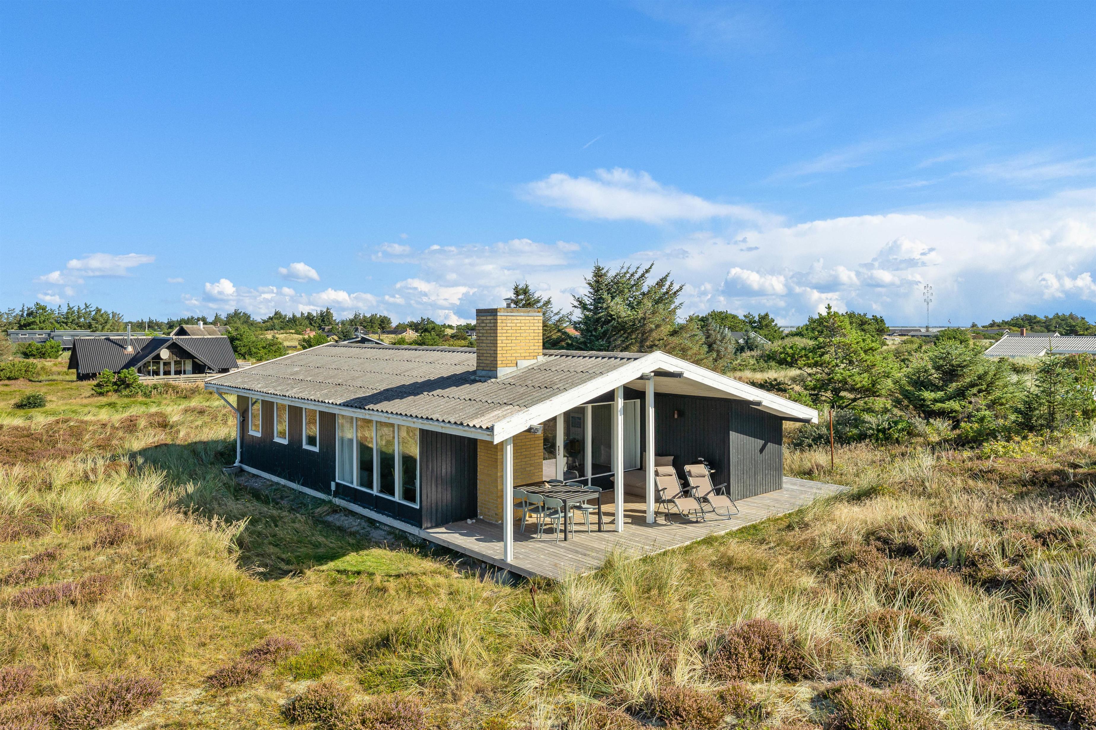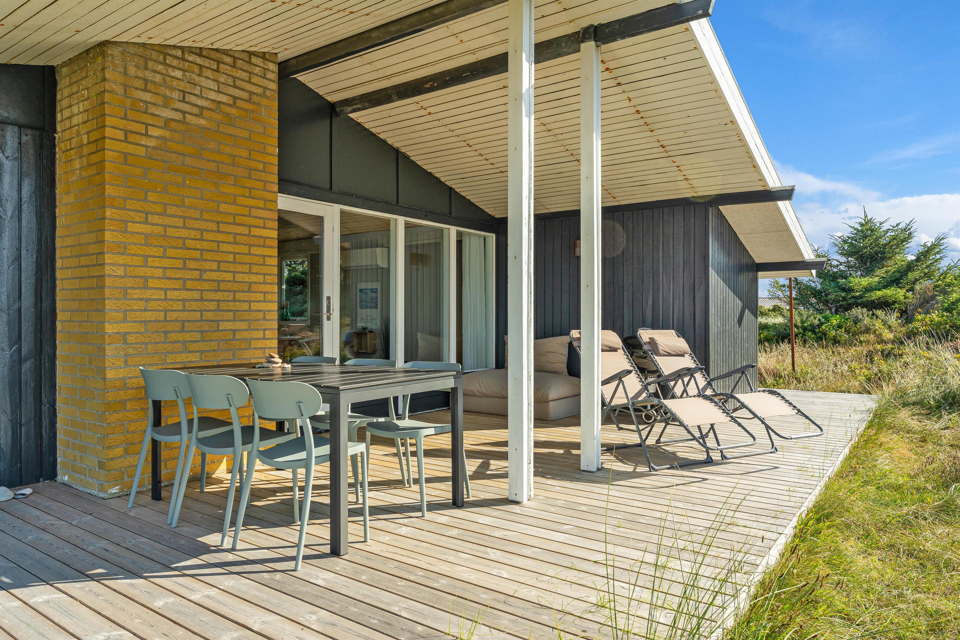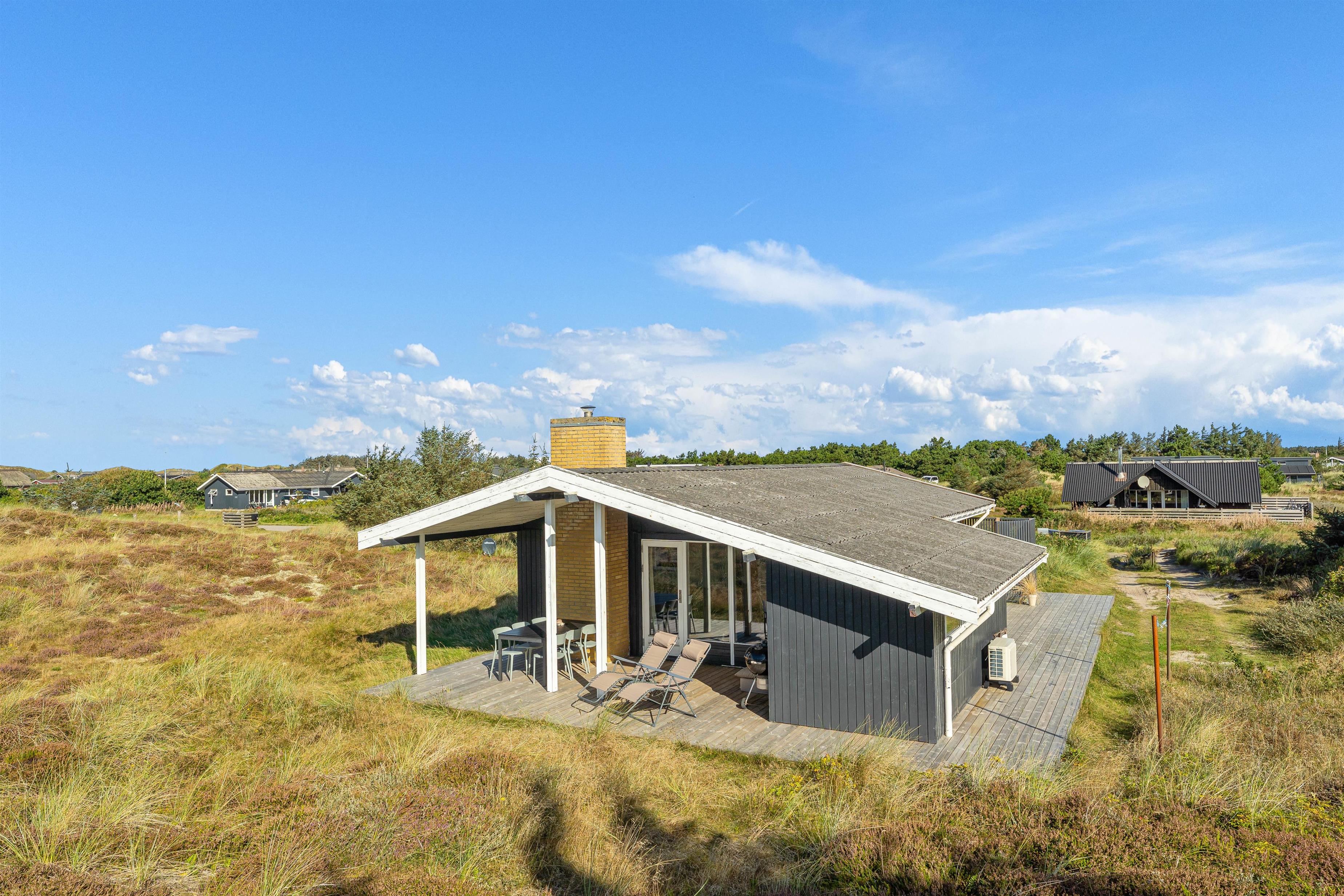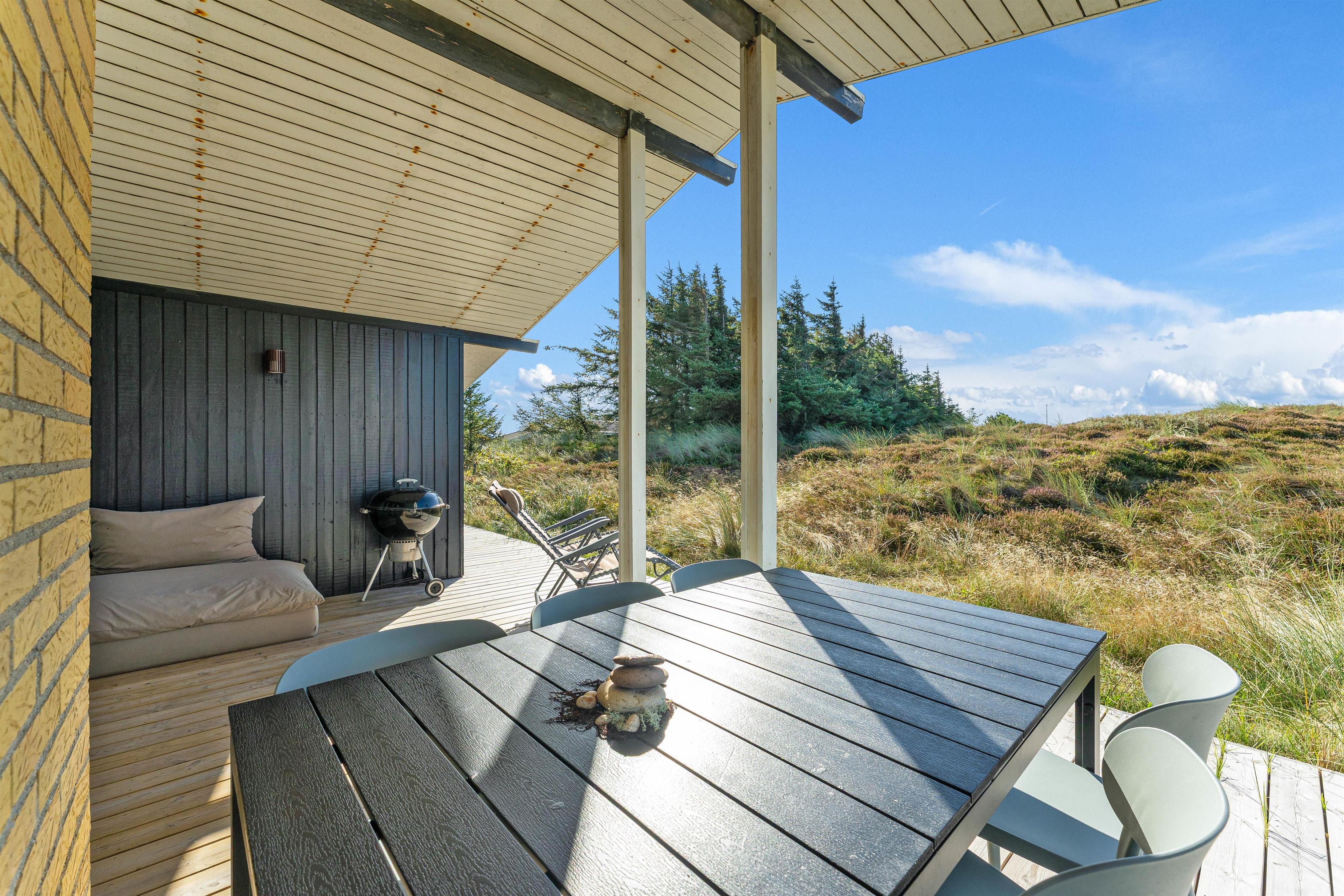 Udenfor finder I en hyggelig terrasse, som er delvist overdækket. Her er der plads til at nyde den skønne vesterhavsluft og natur, imens der bliver slappet af. Derudover er der plads til leg og spil på den skønne naturgrund. Efter en dejlig tur ved stranden kan I skylle sandet af tæerne under udebruseren ved sommerhuset. I skal dog være opmærksomme på, at udebruseren kun er tilgængelig fra april til november.