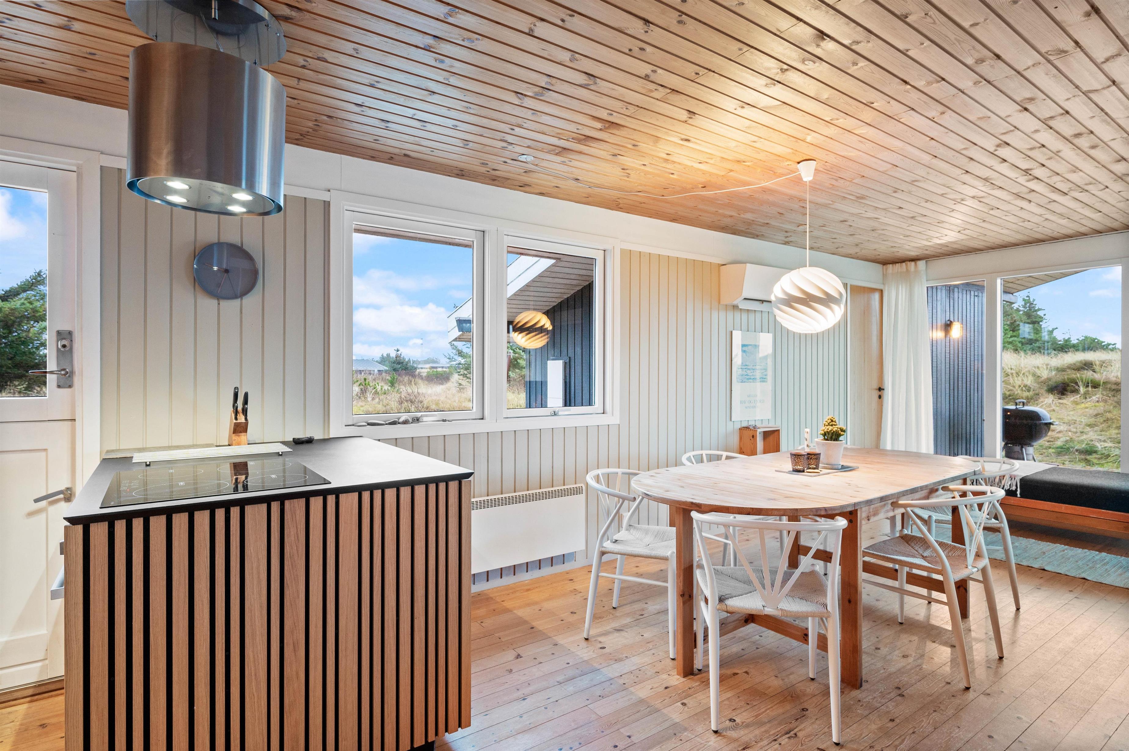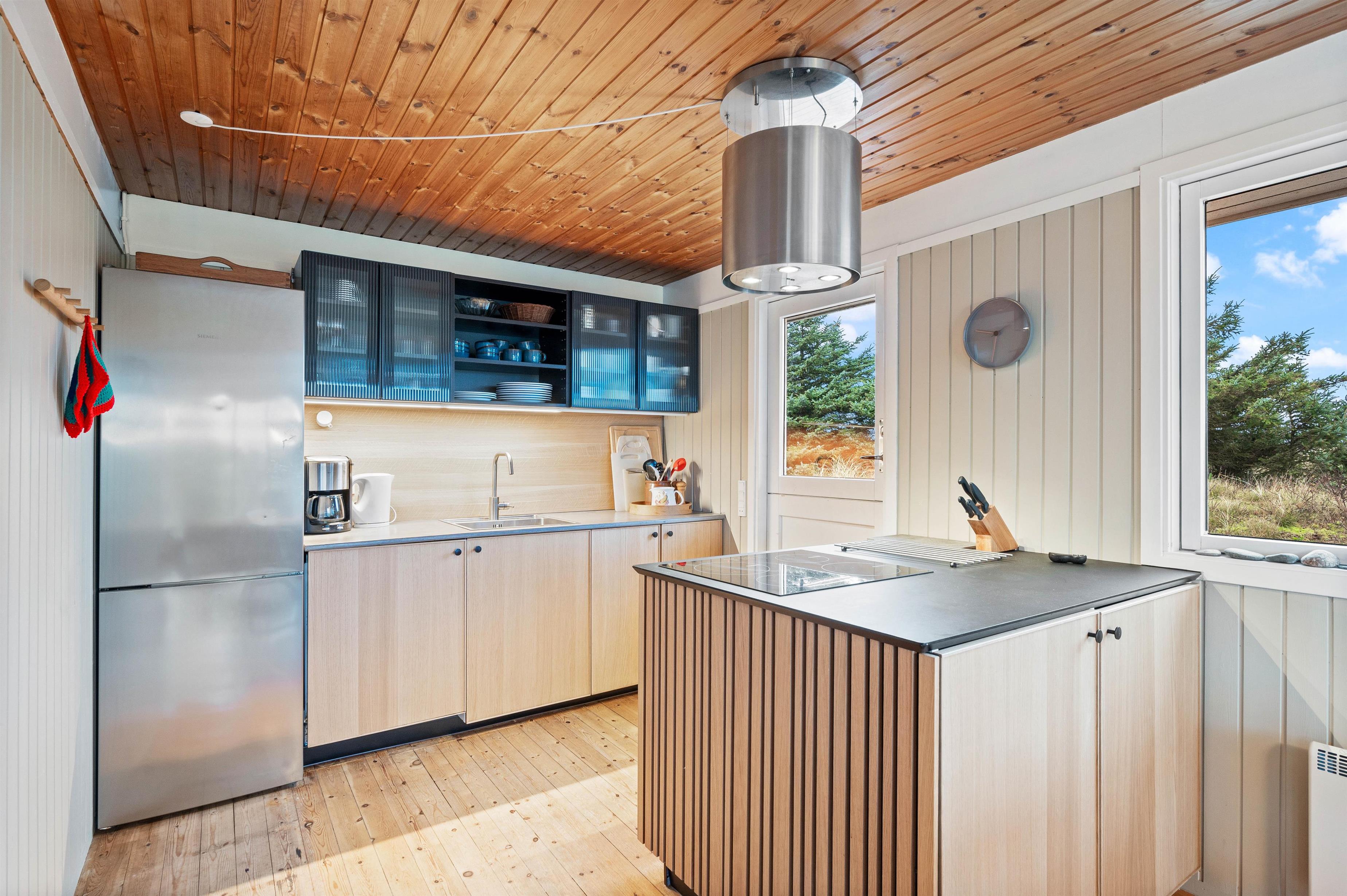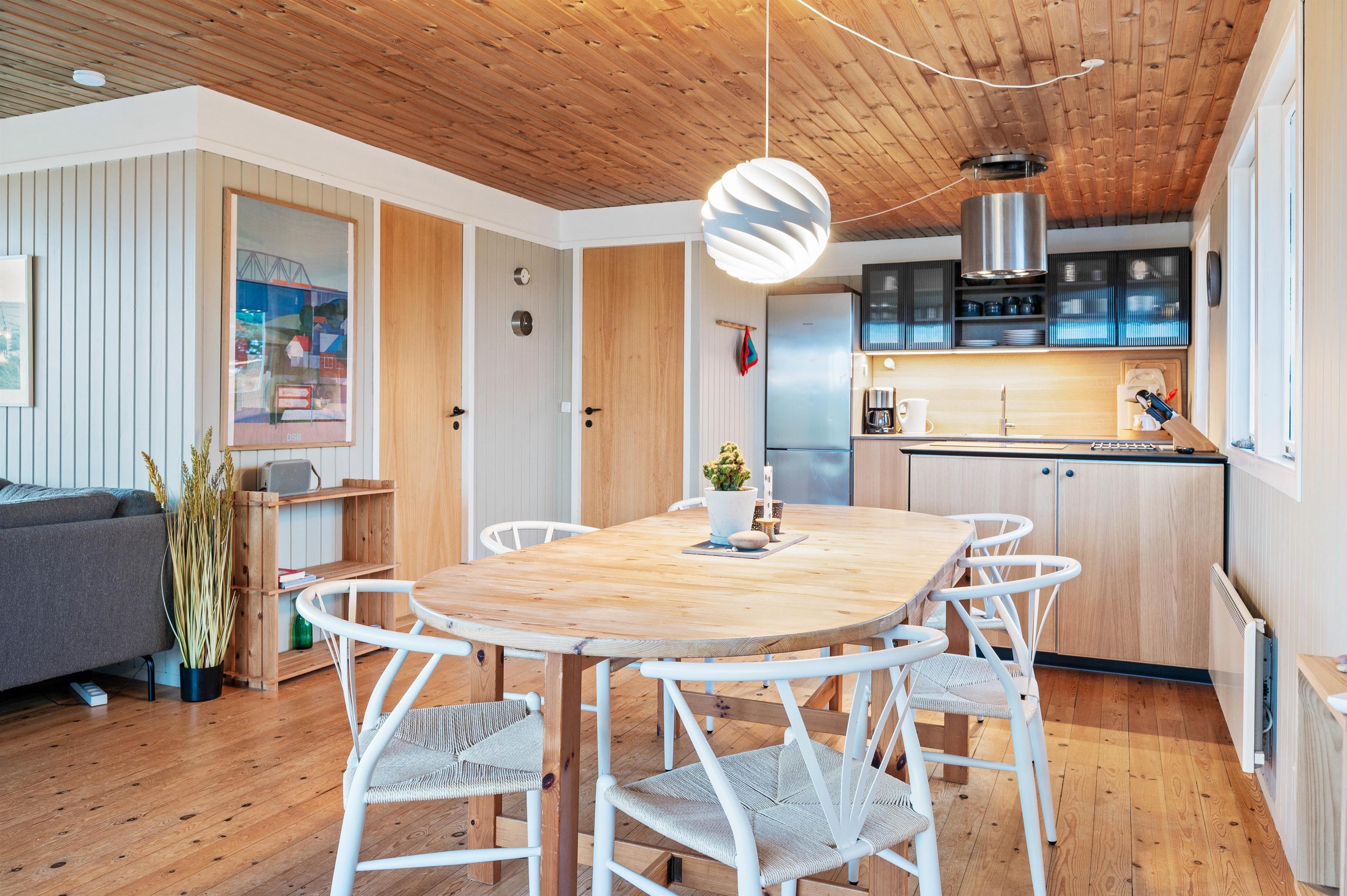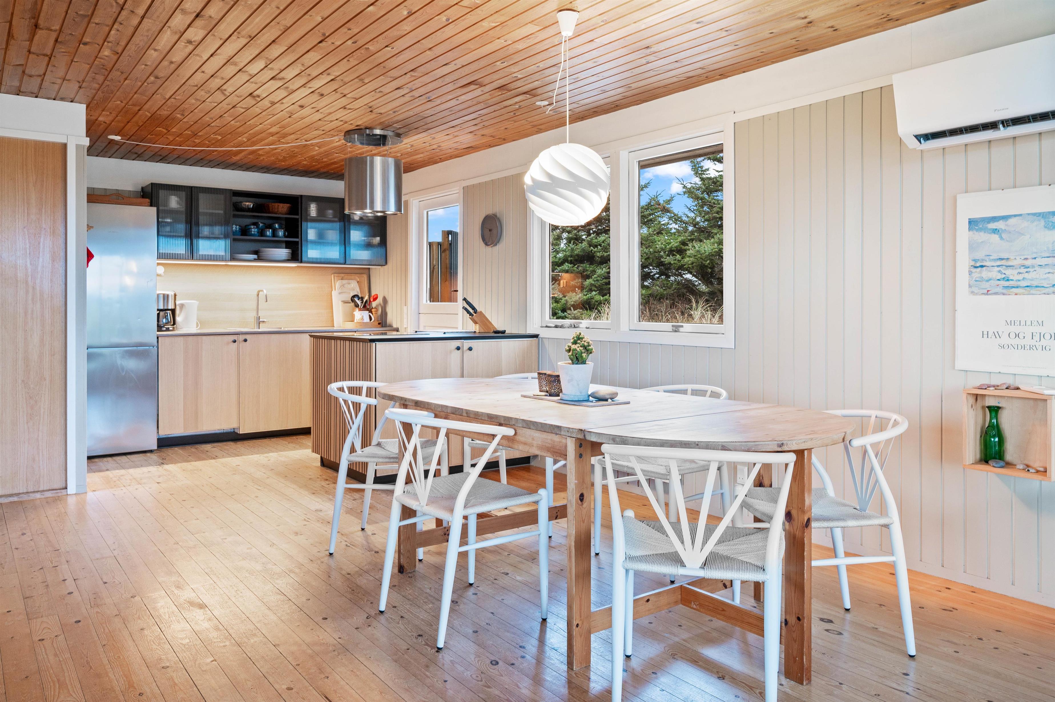 Når I træder ind i dette idylliske sommerhus, bliver I mødt af en hyggelig stemning, hvor der er plads til at hele familien kan samles i køkkenet/alrummet og spille et spil, imens der bliver lavet en lækker middag i køkkenet. Efter en dejlig middag kan de praktiske opgaver hurtigt løses, så der er tid til afslapning foran den knitrende brændeovn, da der i dette sommerhus er en opvaskemaskine. I 2023 er sommerhuset blevet renoveret, hvor der blandt andet er kommet nyt badeværelse, nyt køkken og derudover er der blevet installeret en varmepumpe.