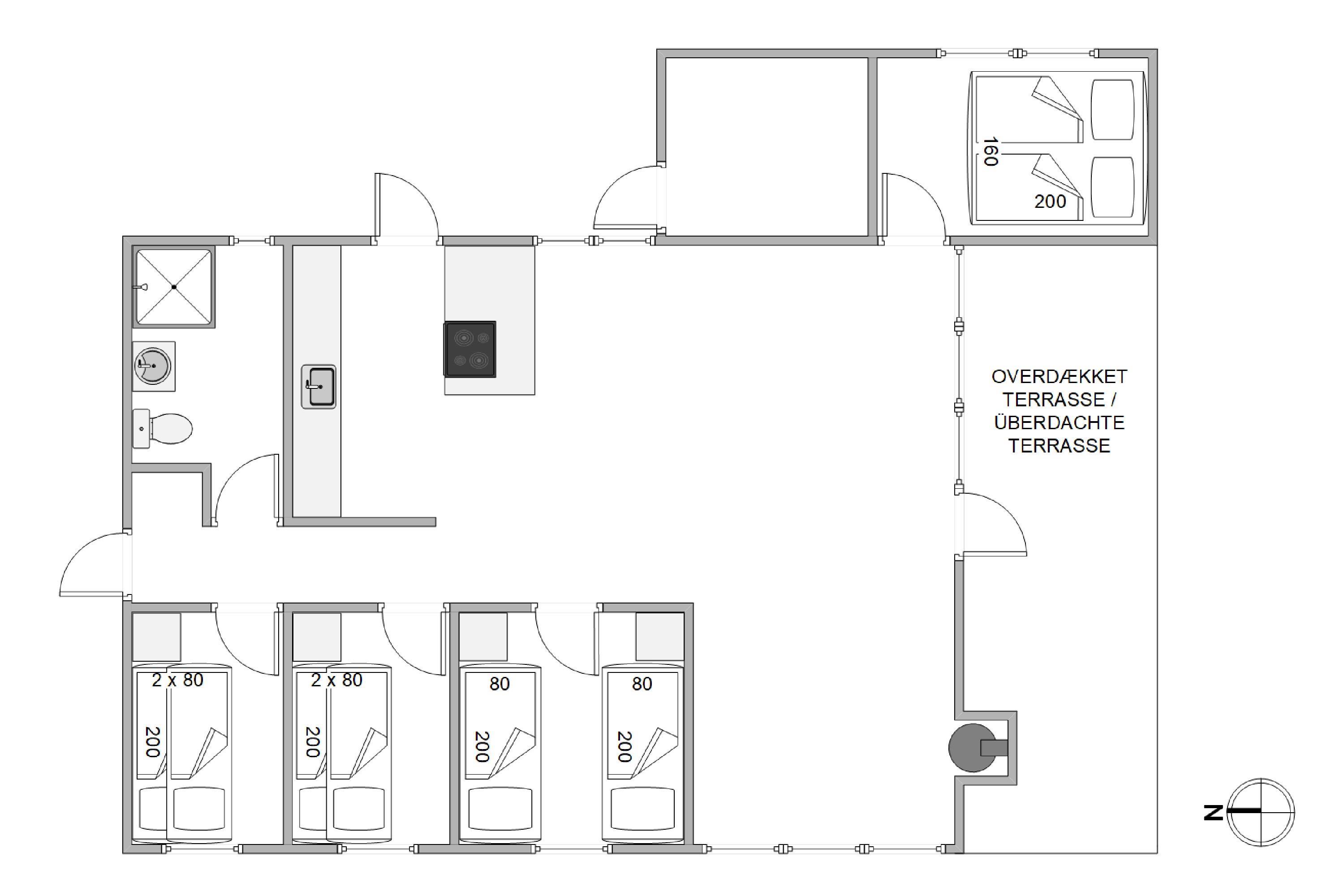 I sommerhuset finder I 6 sovepladser, som er fordelt på 4 soverum. Derudover finder I et badeværelse med gulvvarme i dette hyggelige sommerhus.