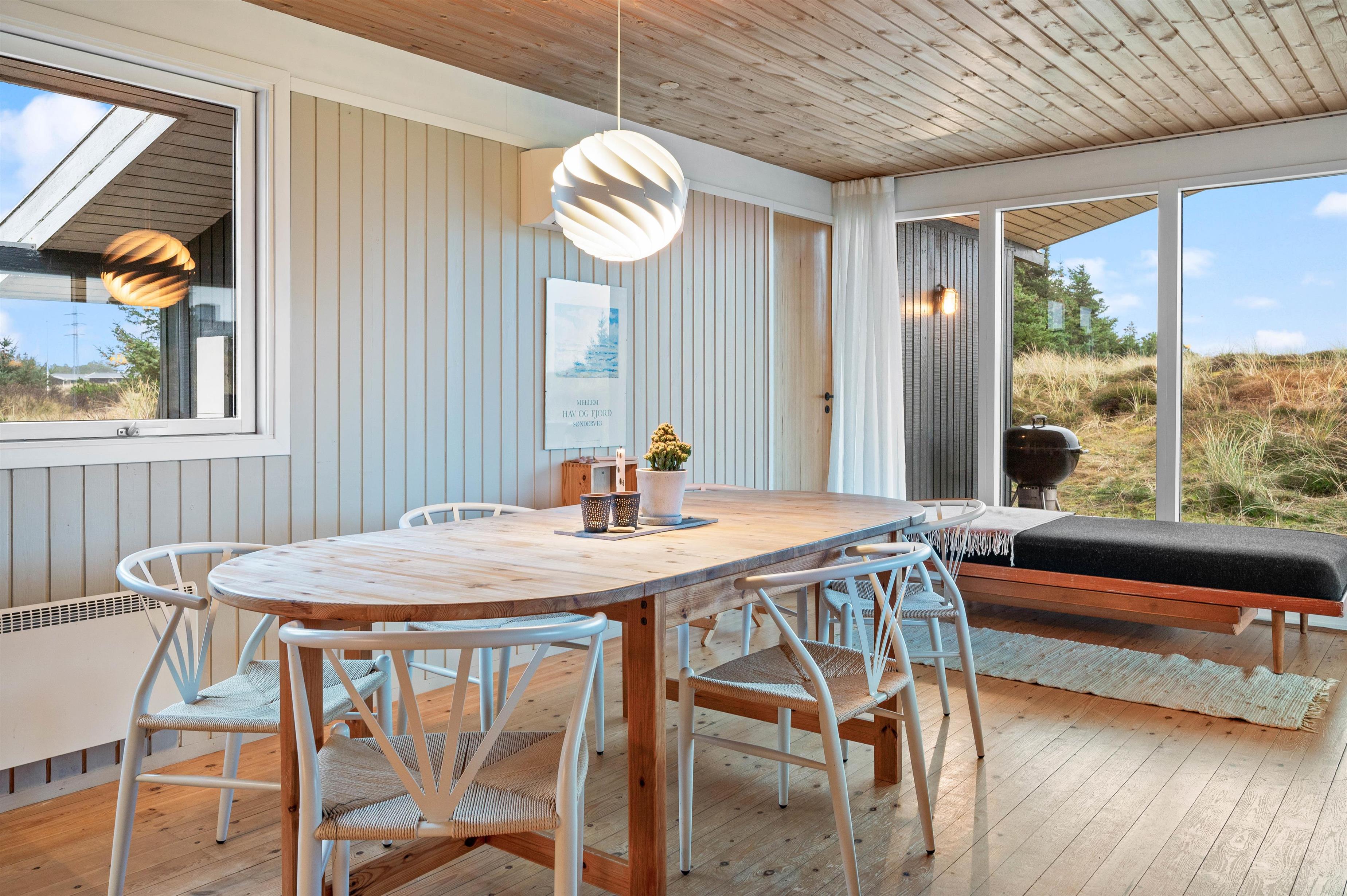 Hvis I vil ud at opleve omgivelserne rundt om sommerhuset, ligger Vesterhavet kun 700 meter væk, hvor I kan gå en lang tur med hunden.