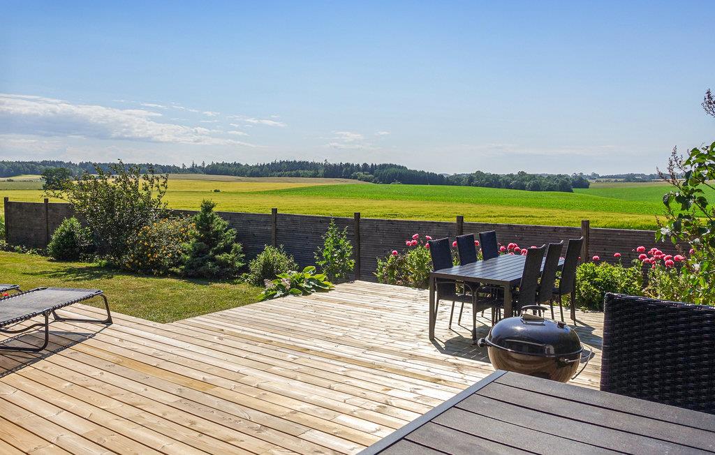 Men det største højdepunkt ved dette sommerhus må være dets vidunderlige udendørsområde. Huset har nemlig en stor, åben terrasse med liggestole til solbadning, en grill til hyggelige grillaftener og både en åben og en overdækket spiseplads. terrassen er det perfekte sted at nyde de milde sommeraftener med et godt glas vin.