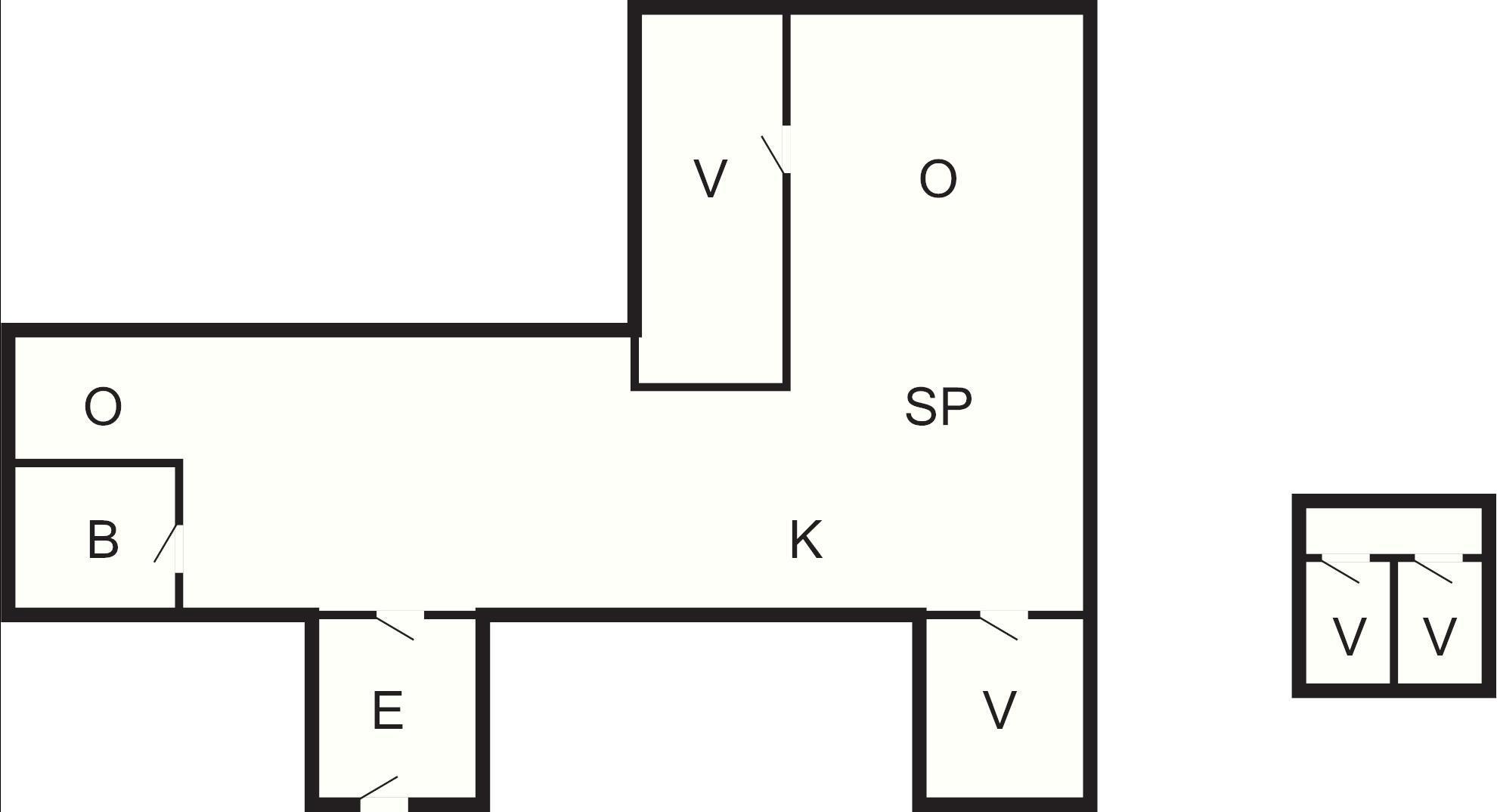 Sommerhuset har et soveværelse med dobbeltseng og et soveværelse med to enkeltsenge. Udestue/stue med adgang til badeværelse med brus. Det åbne køkken leder til stuen med spiseplads, som er komfortabelt indrettet i ejerens personlige stil.