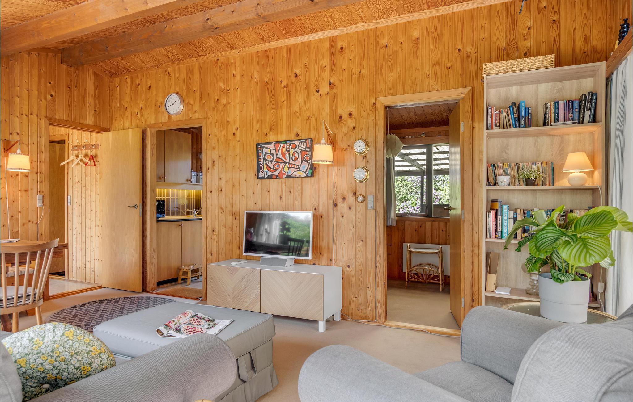 Se frem til en ferie i dette træhus kun få meter fra stranden i Klint.