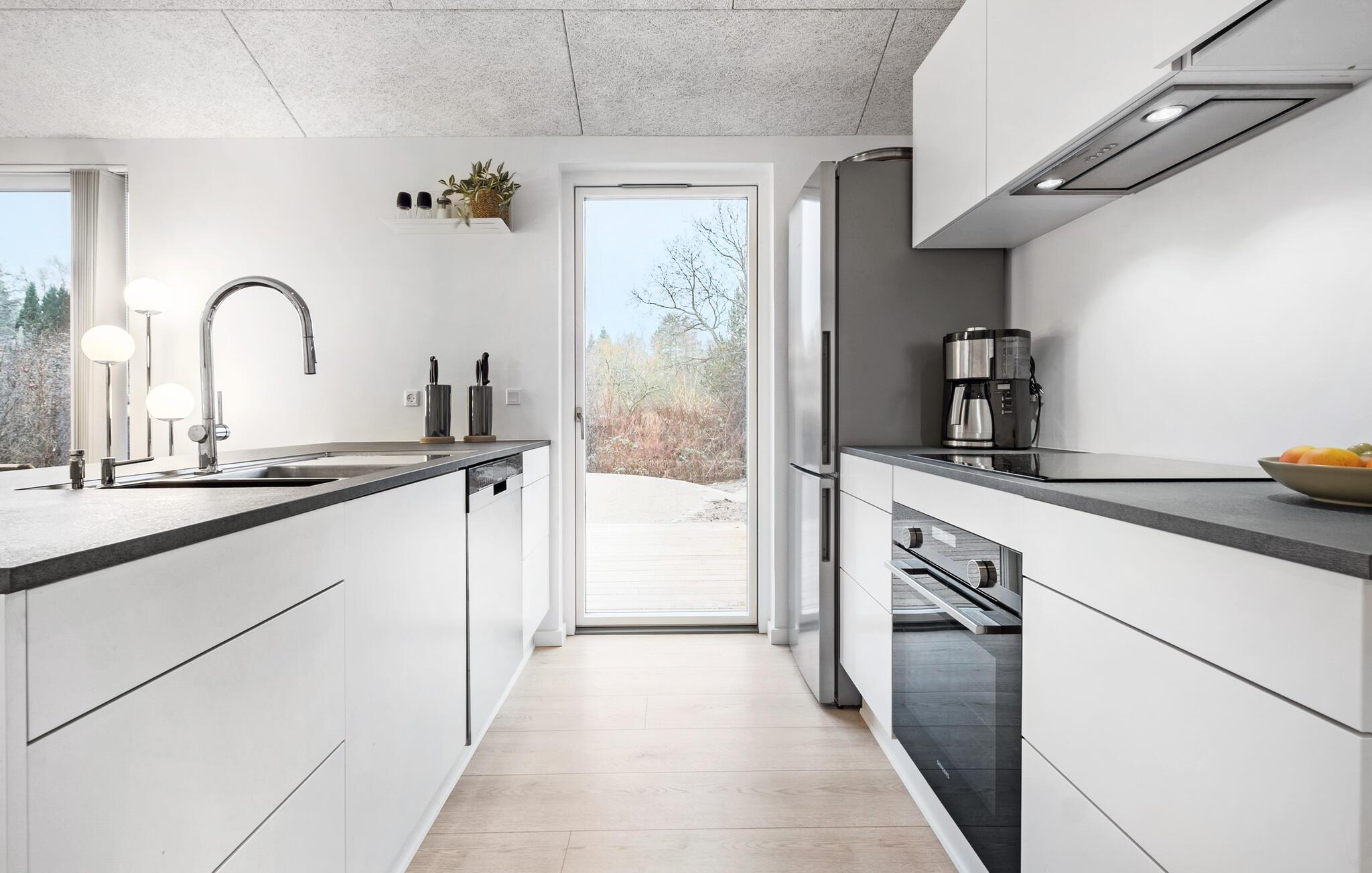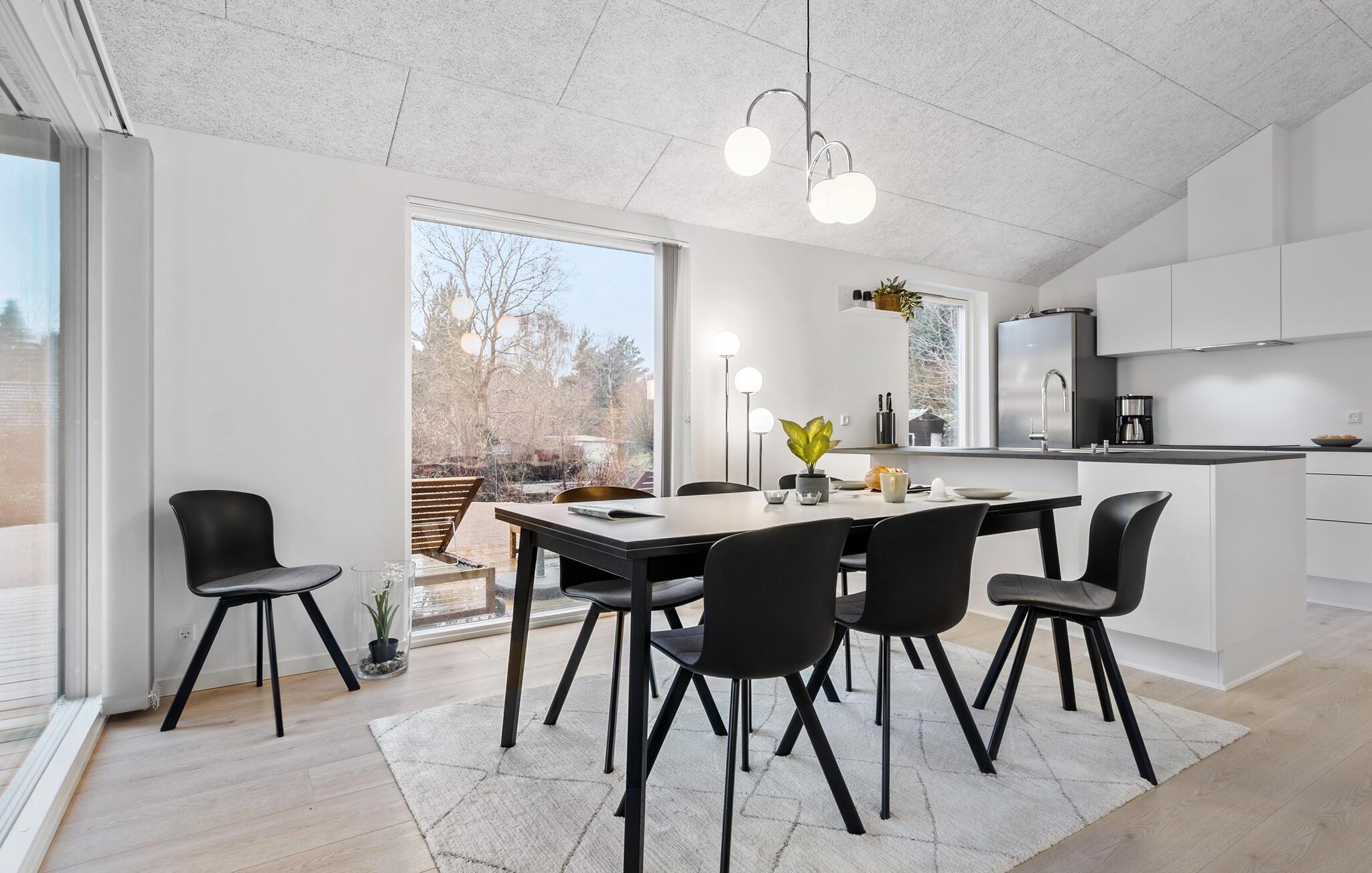 Huset ligger i dejlige omgivelser tæt på Klint Strand, og såven indvendigt som udvendigt har I meget godt at se frem til. Indretningen fremtræder yderst attraktivt med lækre materialer, gode indretningsløsninger og store vinduespartier, der giver et dejligt lysindfald og en fin udsigt til omgivelserne. Fyld dagene op med klassisk feriehygge og tænd op i brændeovnen på de kølige dage, hvor I kan gøre jer det behageligt i sofahjørnet med hver jeres bog eller en hyggelig filmaften. Køkkenet er veludstyret, så lad blot amatørkokkene tage sig god tid til at kræse om livretterne, som I kan nyde ved spisebordet med den gode udsigt.