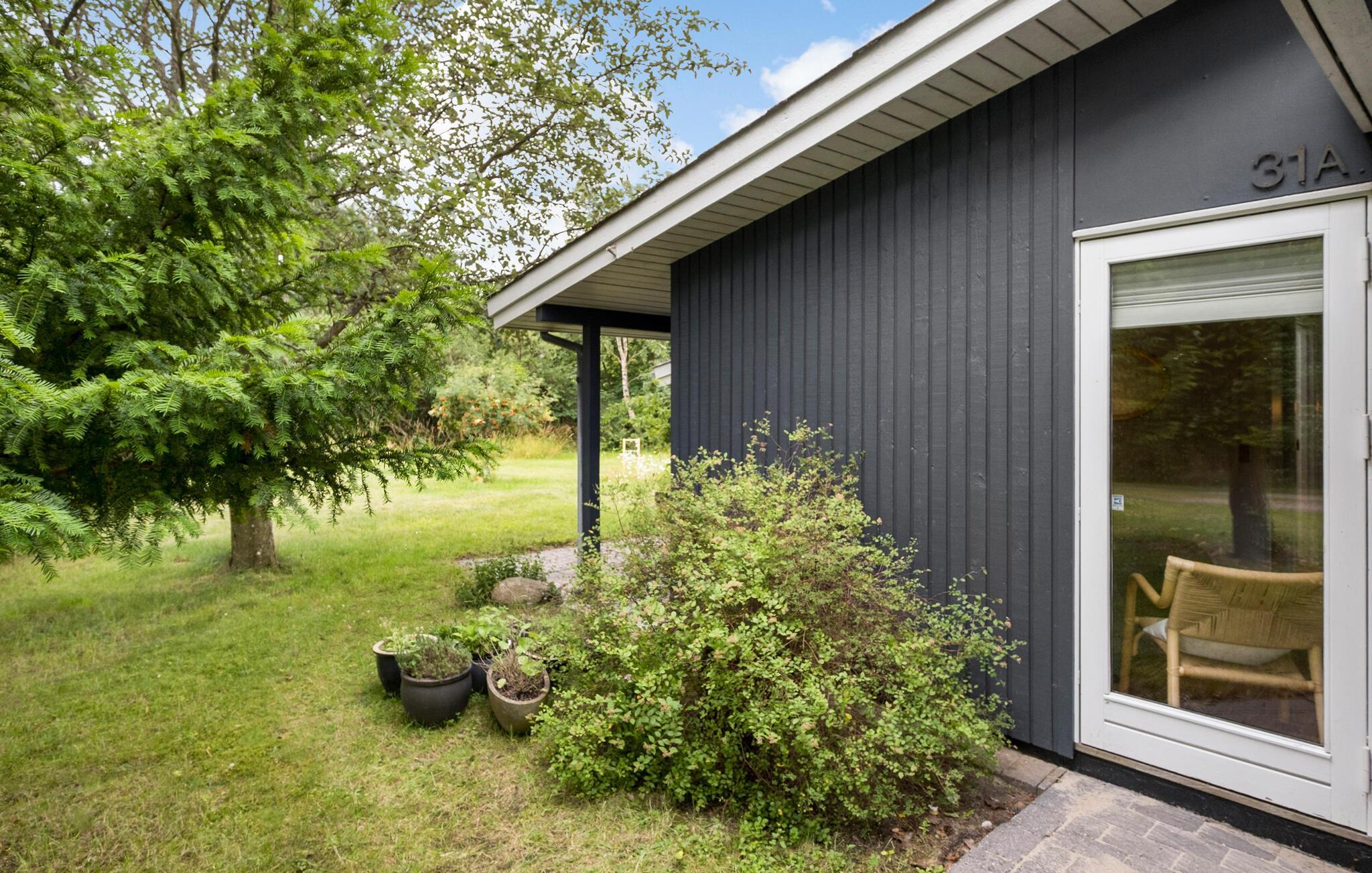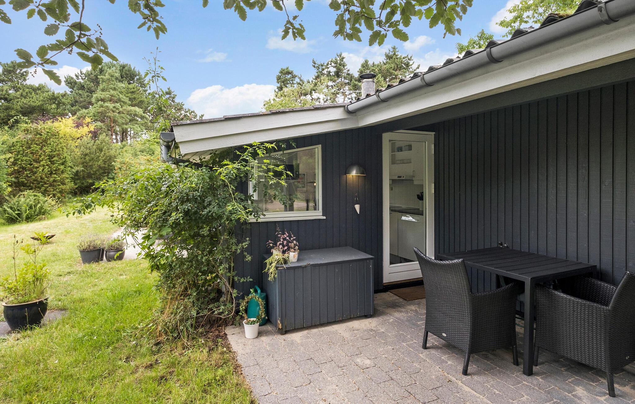 Charmerende feriehus ved Klint Strand med terrasse og naturhave, tæt på Kattegat og Sommerland Sjælland.
