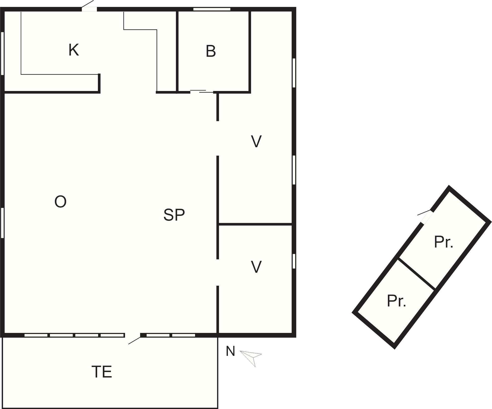 • 2 soveværelser med dobbeltsenge (bemærk: uden døre)