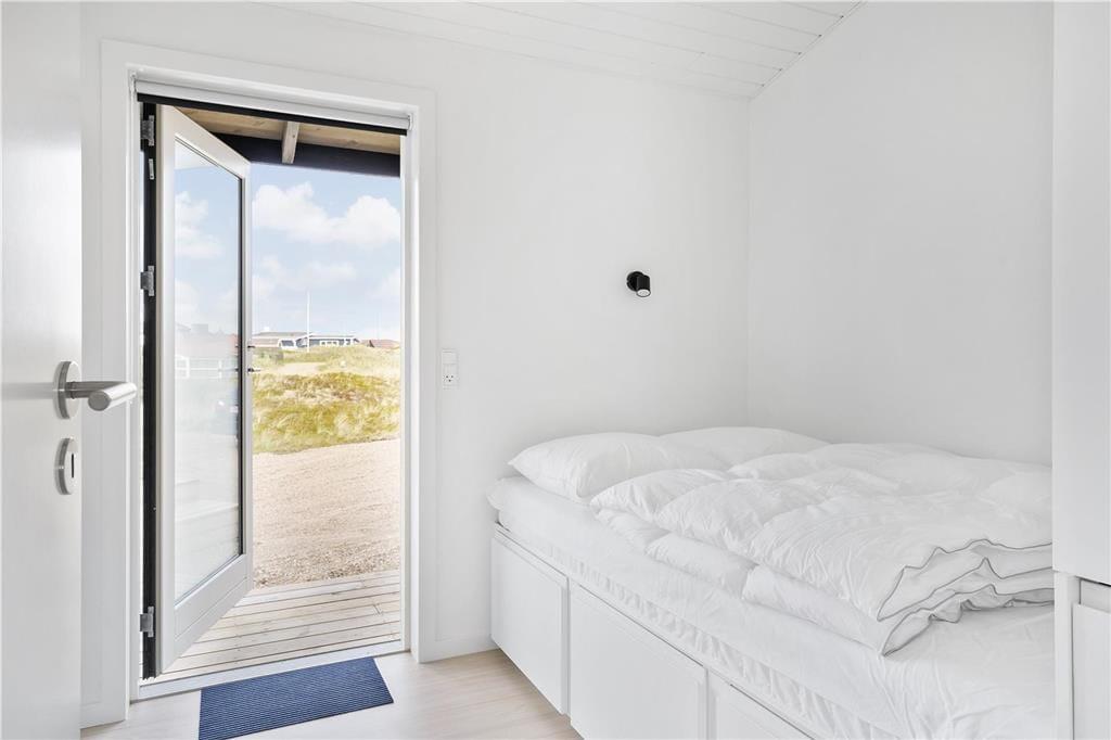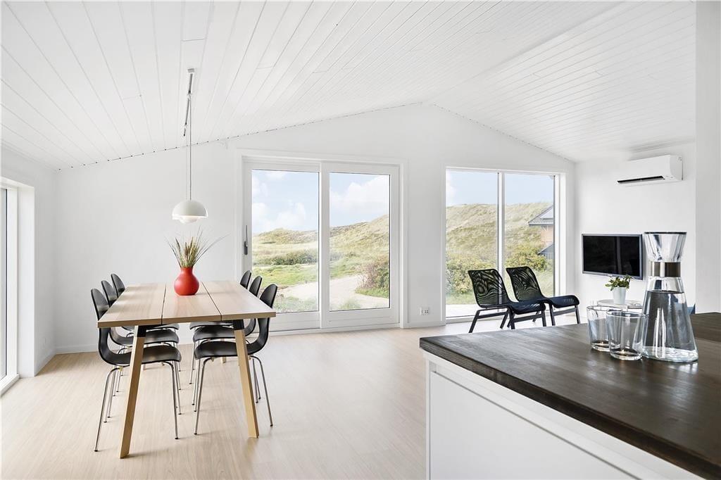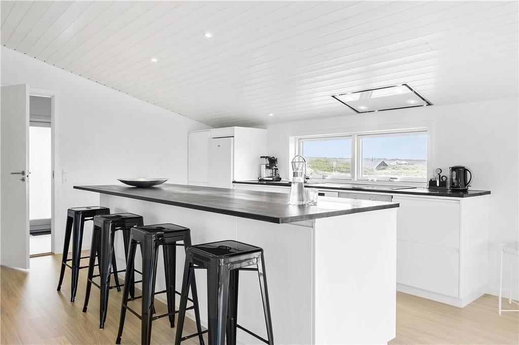 Dette sommerhus emmer af lys og luft med sine store vinduespartier, der lader solens stråler strømme ind og skaber en varm og indbydende atmosfære. Indretningen er enkel og stilfuld med fokus på hygge og funktionalitet, perfekt til afslapning med familien eller gode venner. Her er plads til op til seks personer, så både små og store selskaber kan føle sig hjemme. Forestil dig at samles i stuen med brætspil på bordet, mens klitternes smukke silhuetter tegner sig i baggrunden – her er alle muligheder for at skabe minder, du vil tage med dig længe efter ferien.