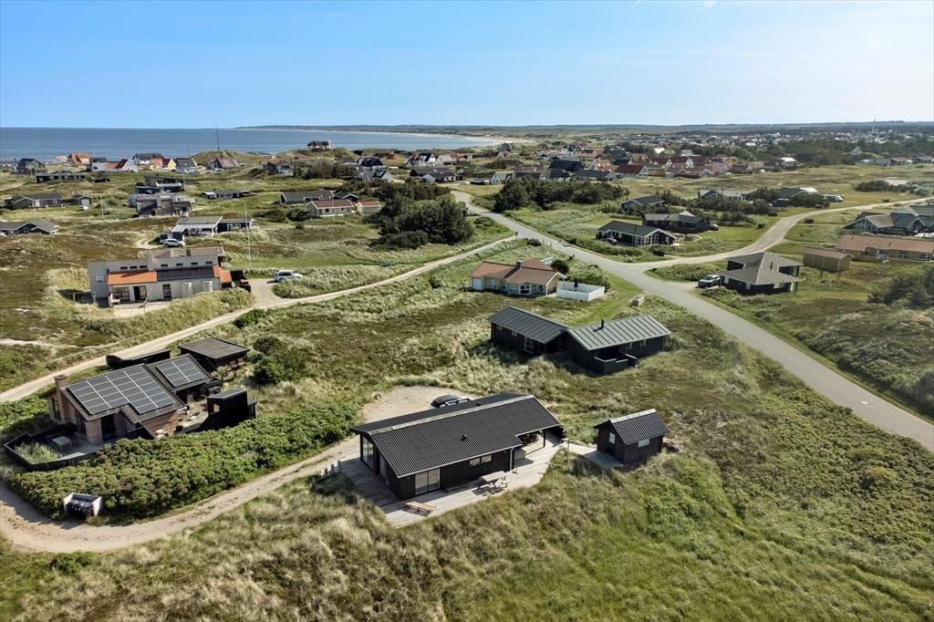 Udendørs er omgivelserne mindst lige så fortryllende som indenfor. Sommerhuset ligger fredeligt i et roligt område, lige op ad klitterne, hvor naturen bliver en del af din dagligdag. Efter en dag ved stranden kan du skylle sandet af under den udendørs bruser, mens du nyder lyden af havet i baggrunden. På terrassen kan du lade dagens tempo falde, nyde solens varme og lytte til fuglesang, mens du forbereder en hyggelig grillaften. Husk også i den forbindelse at nyde de smukke solnedgange og udsigten over Vesterhavet. Den rummelige grund giver også mulighed for leg og aktiviteter i det fri for både store og små.