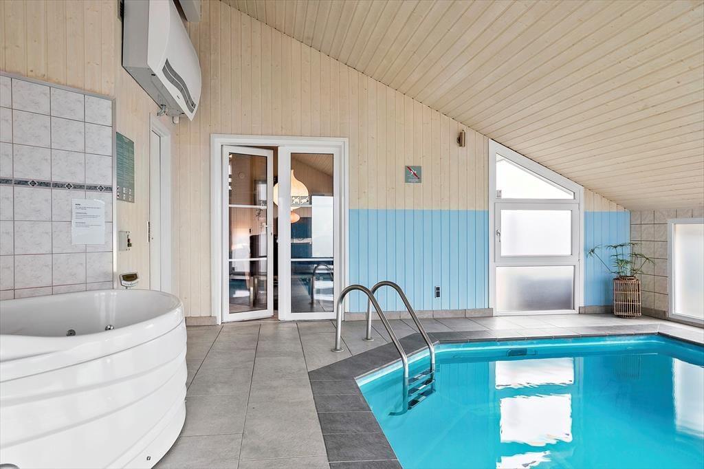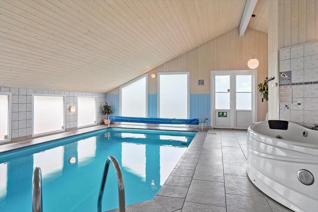 Sommerhuset på Bavnbak 23 byder på masser af komfort og hygge med plads til op til 10 personer. Indenfor mødes du af en lys og rummelig atmosfære, der straks indbyder til afslapning. Den store poolafdeling er husets hjerte, hvor både børn og voksne kan plaske rundt og have det sjovt i timevis. Efter en aktiv dag er brændeovnen det oplagte sted at samle familien, mens ilden knitrer og skaber en hyggelig stemning. Sommerhuset byder også på moderne faciliteter, der sikrer, at du kan nyde ferien i afslappede omgivelser hele året rundt.