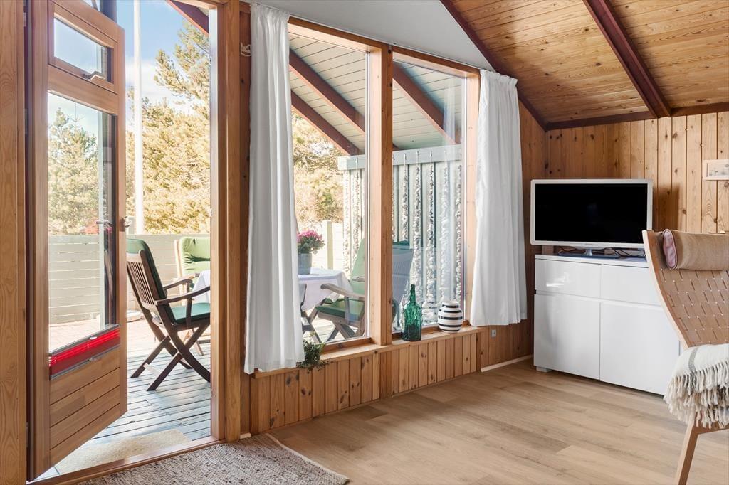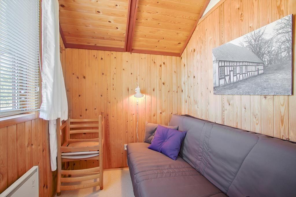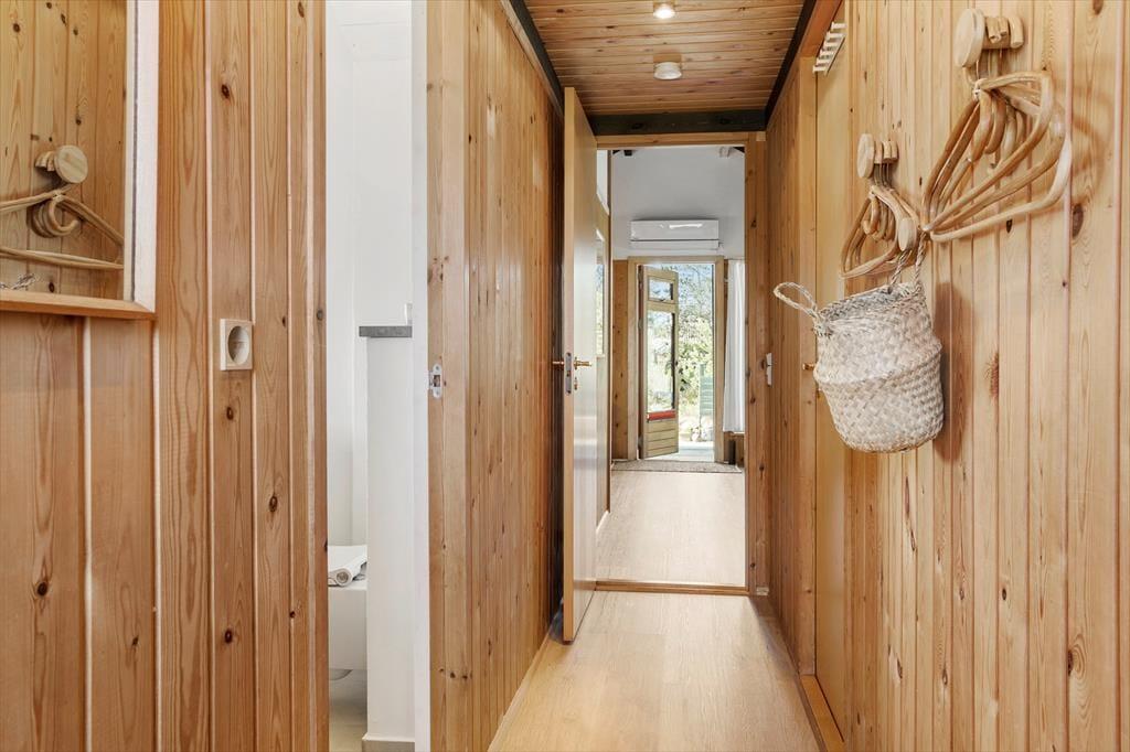 Når du træder ind i sommerhuset, mærker du straks den hyggelige og indbydende atmosfære. Det klassiske træinteriør danner en varm ramme om din ferie, og med plads til op til seks personer er der god mulighed for at samle familien eller vennegruppen til afslappende dage i fredelige omgivelser. Huset er udstyret med en varmepumpe, som sikrer et behageligt indeklima året rundt. Efter en dag i naturen kan du slappe af i stuen med en god bog eller foran fjernsynet.