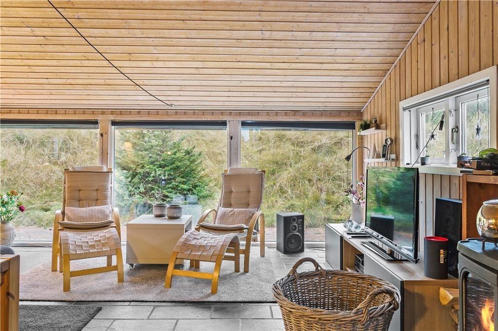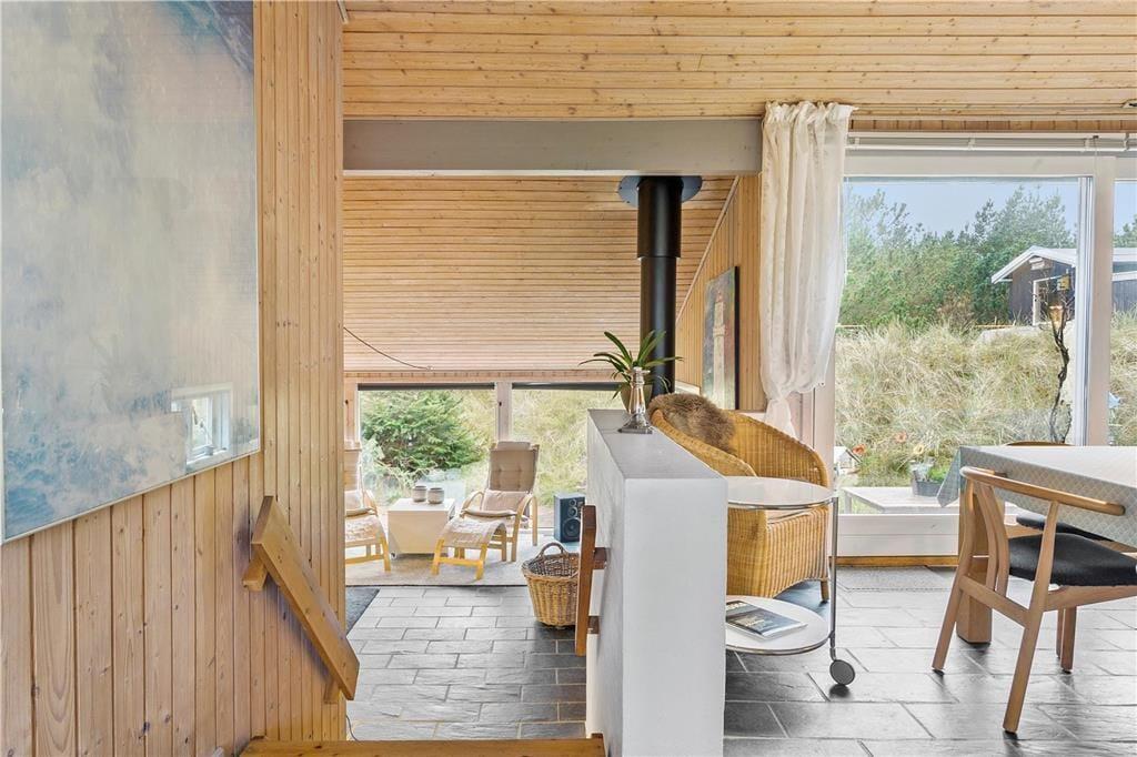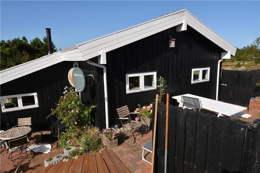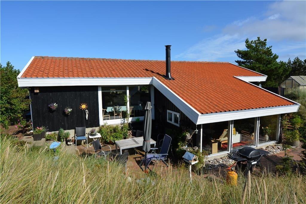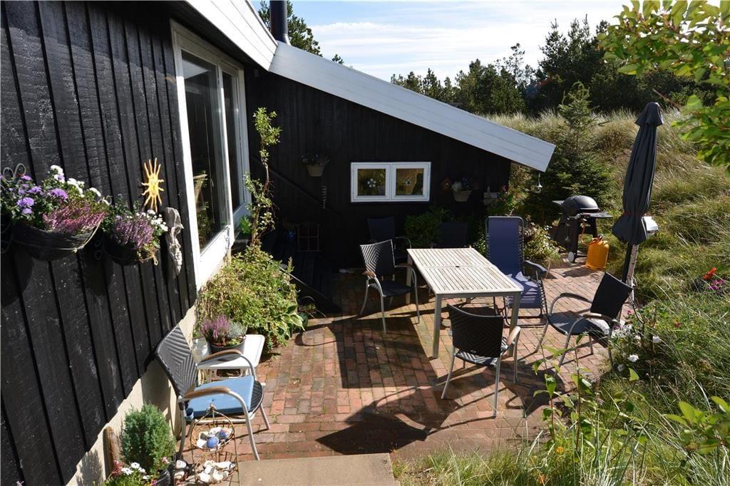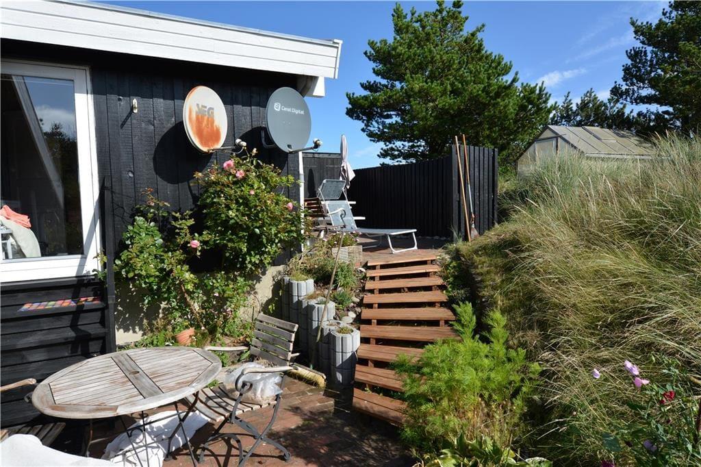 Sommerhuset har dejlige udendørs arealer, hvor du kan nyde naturen helt tæt på. Den rummelige terrasse er perfekt til at starte dagen med en kop kaffe i morgenlyset eller til grillhygge med venner og familie, mens solen går ned over klitlandskabet. På den store grund er der rig mulighed for at lege med børnene eller lade hunden boltre sig frit. Her finder du et åndehul, hvor du kan slappe af, genoplade og nyde den friske havluft i fred og ro.
