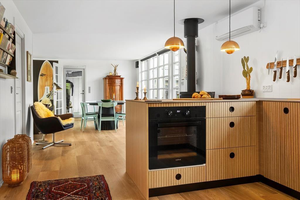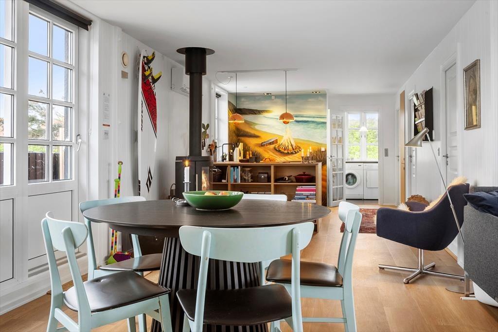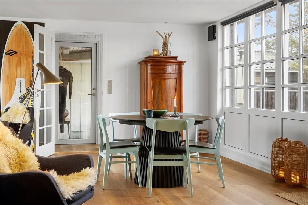 Når du træder ind i Stågbak 4, bliver du mødt af en stilfuld og smagfuld indretning, der oser af moderne komfort. Her får du alt det, du behøver for at nyde din ferie i fulde drag – og mere til. Køkkenet står klar til at gøre dine måltider til en leg, mens stuen indbyder til hyggelige stunder foran fjernsynet eller brændeovnen på de kølige aftener. Huset kombinerer hygge med funktionalitet, hvilket skaber en indbydende atmosfære, hvor du kan slappe af og lade batterierne op. Uanset årstiden vil du opleve en stemning af ro og velvære i dette flotte sommerhus.