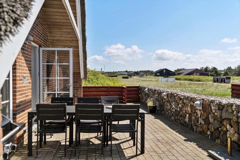 De udendørs arealer omkring Kløvborgsti 8 indbyder til både afslapning og aktiviteter. På terrasserne kan du finde sol eller skygge alt efter behov, mens børnene leger på græsset. Start dagen med morgenkaffe på terrassen, og mærk havbrisen, der bringer duften af saltvand og natur med sig. Med Vesterhavet kun 200 meter væk kan du tage en hurtig dukkert, gå en tur langs stranden eller blot nyde lyden af bølgernes brusen. Her er rammerne sat for at koble helt af og nyde livet udendørs.