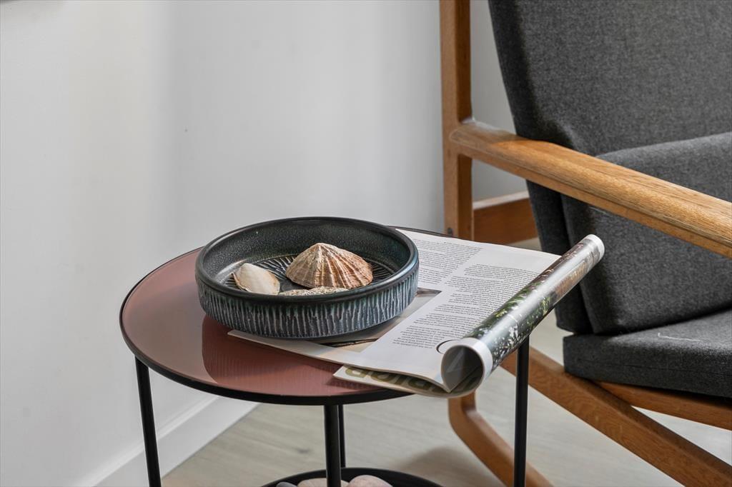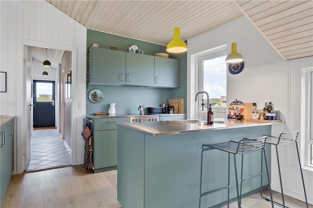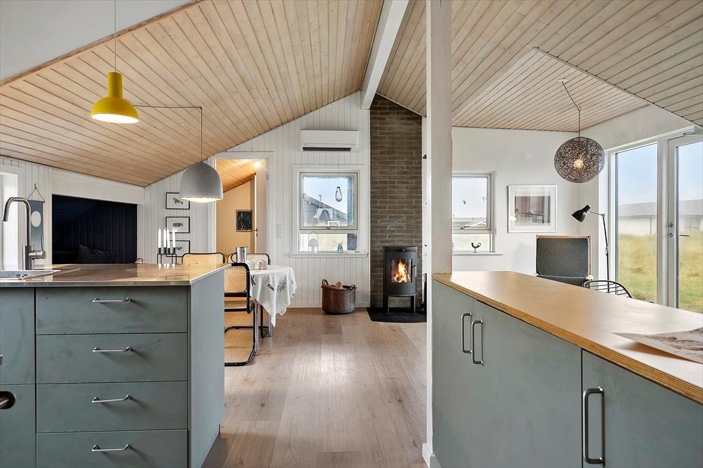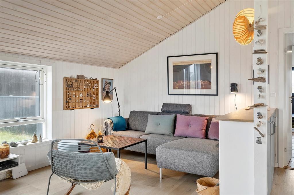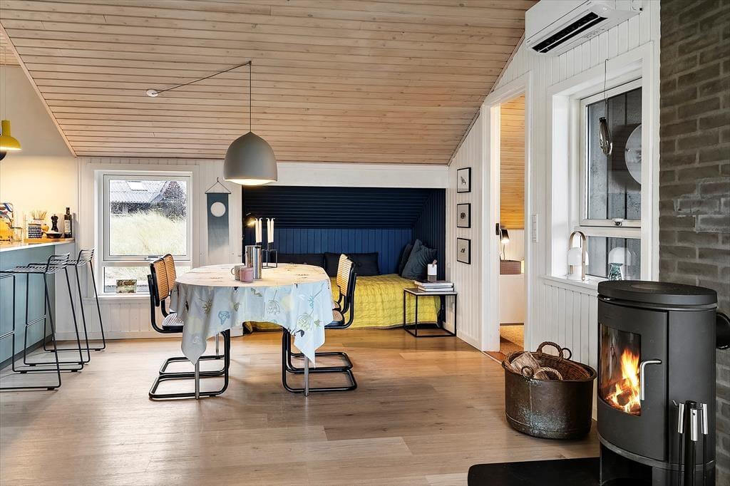 Træd indenfor i et sommerhus, hvor hver krog emmer af charme og hygge. Her mødes den varme glød fra den hyggelige brændeovn med en indbydende og lys stue, der byder på en gennemført kombination af moderne bekvemmeligheder og rustik autenticitet. Du kan forestille dig de dejlige aftener, hvor du og dine nærmeste samles om ilden, mens latter og gode samtaler fylder rummet. De nøje udvalgte møbler og den bløde belysning skaber en atmosfære, der inviterer til afslapning og fordybelse. De fine detaljer i indretningen, som de hyggelige tekstiler og de smukke træoverflader, giver sommerhuset et personligt præg, der gør det til mere end bare en feriebolig – det er et hjem væk fra hjemmet. Her mærkes den ægte fornemmelse af ro og velvære, som kun et gennemarbejdet sommerhus kan tilbyde, og du vil uden tvivl føle, at hver eneste detalje er med til at gøre dit ophold helt særligt.