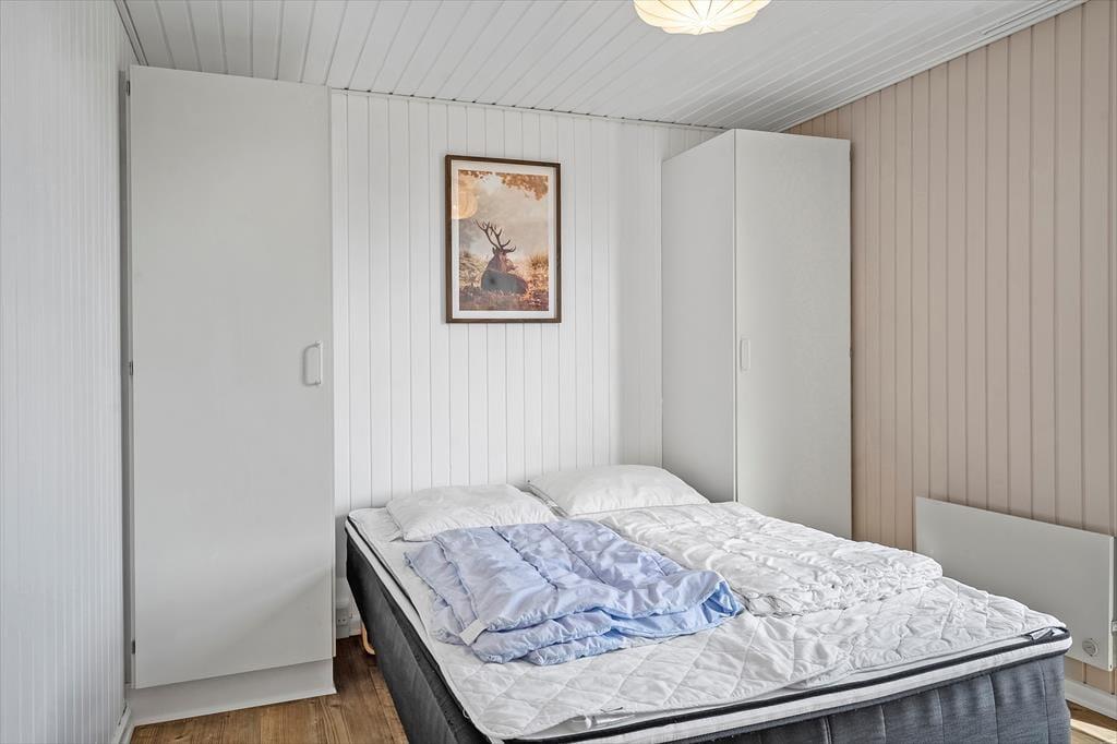 Træd ind i sommerhuset og mærk straks den varme og indbydende atmosfære, der spreder sig gennem hele boligen. Den dejlige duft af træ fra brændeovnen og den blide varme, den udstråler, sætter scenen for hyggelige stunder, hvor tiden synes at stå stille. I det rummelige aktivitetsrum kan både børn og voksne finde deres eget hjørne af glæde – lige fra kreative lege til fælles spil og sjove aktiviteter. Indretningen er med omhu valgt, så hver en krog udstråler komfort og nærvær, hvilket gør det nemt at føle sig hjemme med det samme. Den omhyggeligt tilrettelagte planløsning sikrer, at alle kan nyde deres personlige stunder, mens de stadig er tæt på hinanden og kan dele de mange hyggelige øjeblikke, som ferien byder på.