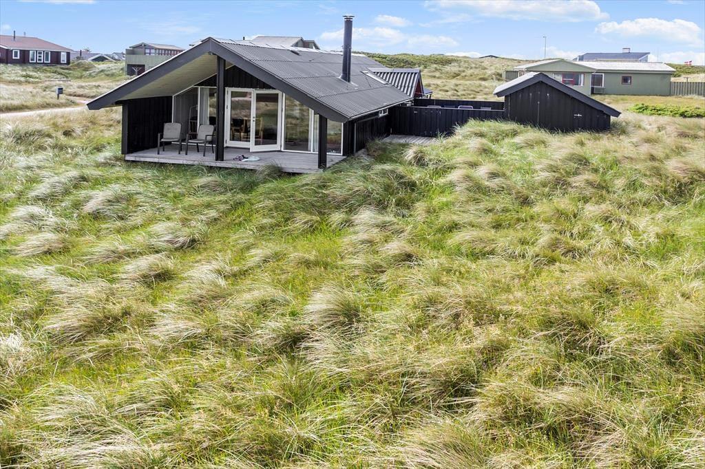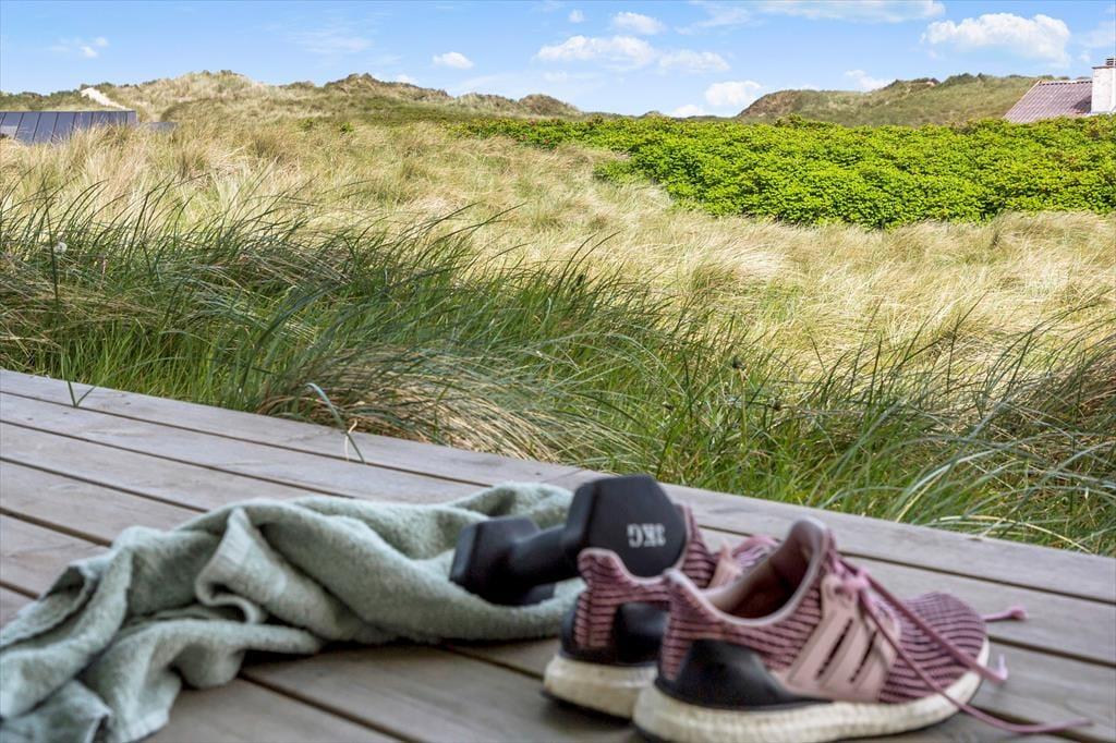 Udenfor åbner sommerhusets beliggenhed op for en verden af naturoplevelser. Du træder ud i en fredfyldt have, der ligger tæt på de betagende klitter, som gør området så unikt. Her kan du mærke den friske brise og høre naturens egne lyde, mens du slår dig ned med en god bog eller nyder en kop kaffe på den hyggelige terrasse. Det er et sted, hvor du med lethed kan opleve den skønne, vilde natur og lade tankerne flyve frit. Den rolige have indbyder til både leg og afslapning, og det er nemt at forestille sig, hvordan solens stråler leger med skyggerne, mens dagen skrider frem. Samtidig giver den nære beliggenhed til klitterne en helt særlig følelse af frihed og eventyr, hvor du med blot nogle få skridt er tæt på naturens egne vidundere.