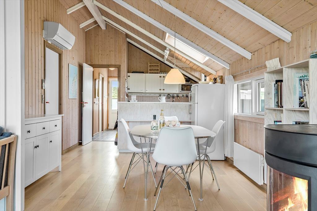 Træd ind i sommerhuset, hvor en indbydende og intim atmosfære møder dig. Her er den hyggelige stue med den charmerende brændeovn, som indbyder til lange, varme aftener med hyggesnak og afslapning. Den smukke, velindrettede bolig fremstår med nøje udvalgte materialer og en gennemført, personlig stil, der skaber en umiddelbar følelse af hjemlighed. Det er tydeligt, at der er tænkt på detaljerne for at gøre dit ophold så behageligt som muligt. Her findes der ikke plads til husdyr, da udlejeren på grund af allergi har sørget for et allergivenligt miljø, hvor du kan nyde roen og den friske luft uden bekymringer. Hvert rum er designet til at vække dine sanser – fra de varme farver, der understreger den intime atmosfære, til den bløde belysning, der indrammer rummet på en måde, der indbyder til afslapning og nærvær. Denne bolig er et perfekt tilflugtssted for dig, der søger både stil og komfort i et charmerende miljø.
