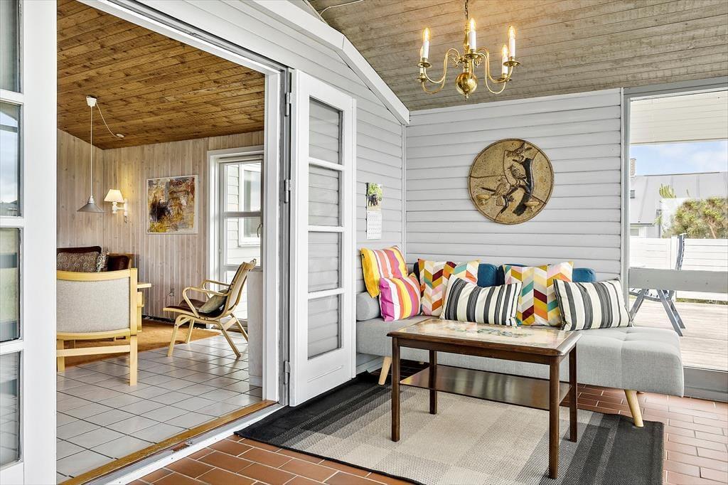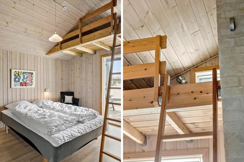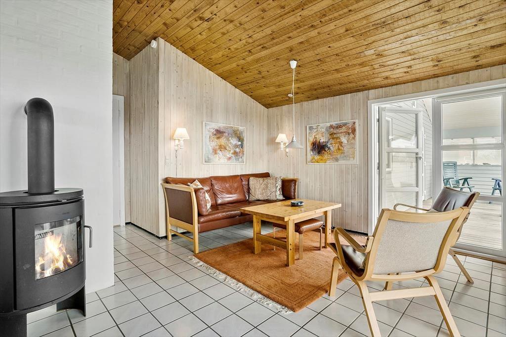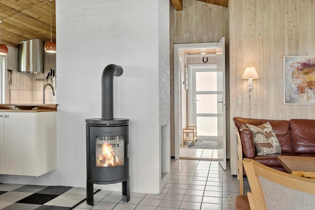 Sommerhuset på Kobbelsti 15 er indrettet med tanke på hygge og komfort. Her venter en lys og indbydende stue, hvor brændeovnens knitren skaber den perfekte stemning efter en lang dag ved havet. Stuen ligger i åben forbindelse med køkkenet og spiseområdet, hvilket gør det let at samles om måltiderne og ferieaktiviteterne. Store vinduer lader dagslyset strømme ind og giver et dejligt kig til de naturskønne omgivelser. Med plads til seks personer er sommerhuset ideelt til både børnefamilier og vennepar, der vil nyde en afslappende ferie i Klitmøller.