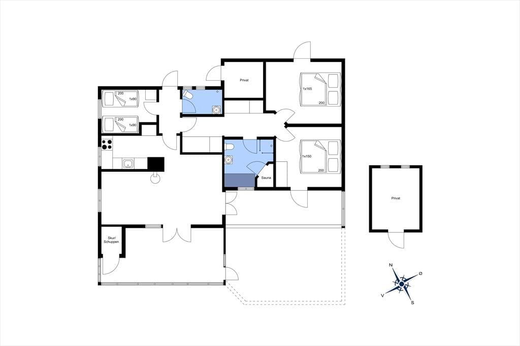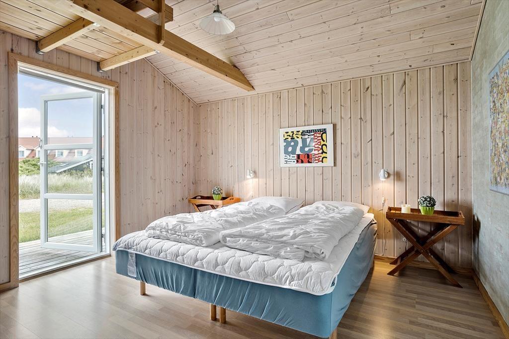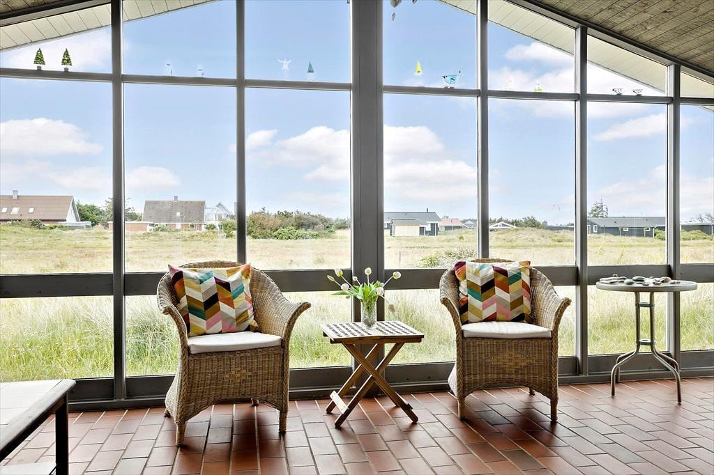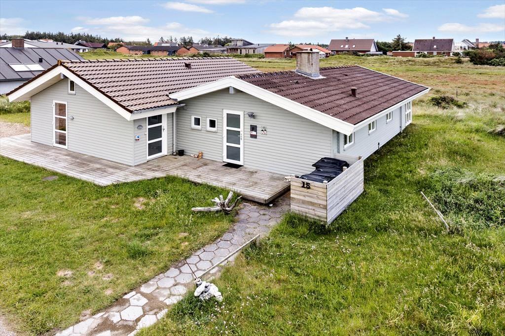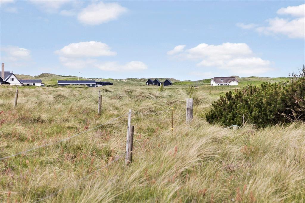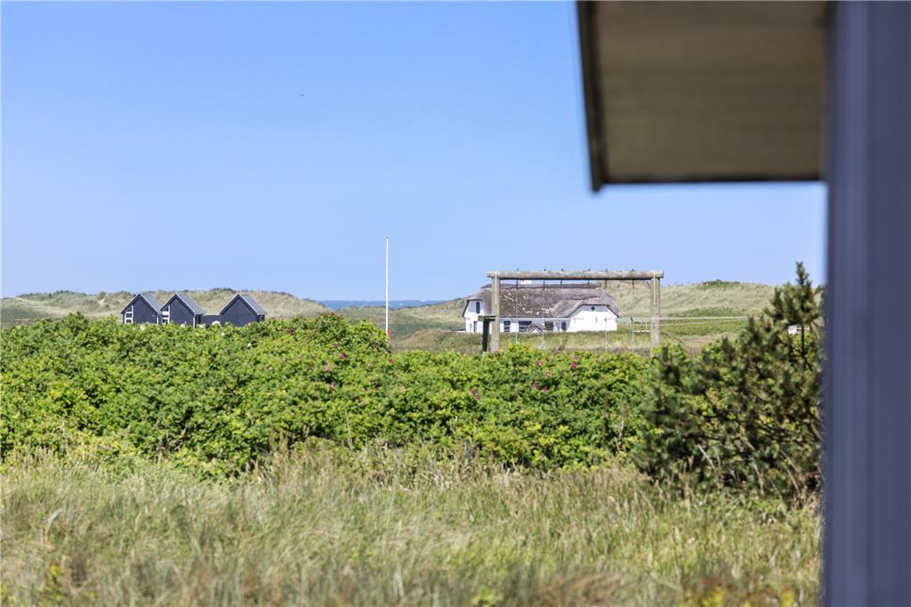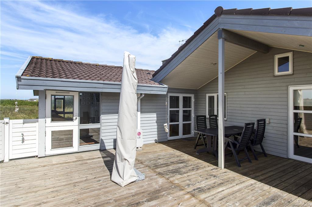 Udenfor finder du et skønt terrasseområde, hvor du kan nyde din morgenkaffe med udsigt til de åbne, grønne arealer omkring huset. Her kan du læne dig tilbage i en liggestol, mens du lytter til fuglenes kvidren og mærker den friske havbrise. Terrassen er det oplagte sted til hyggelige grillaftener, hvor du kan samles med dine nærmeste og nyde ferien under åben himmel. Med kort afstand til Vesterhavet er det let at tage en forfriskende dukkert eller gå en lang tur langs stranden – uanset årstiden er havet en oplevelse værd.
