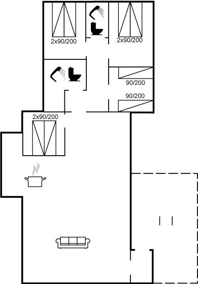 Der er 2 badeværelser med bruseniche og 2 toiletter. Der er gulvvarme på 2 badeværelser.