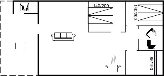 Der er i alt 3 soveværelser. Sovepladserne fordeler sig på: 4 sovepladser i dobbeltsenge. 2 sovepladser i køjeseng.