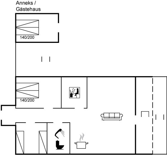 Der er i alt 2 soveværelser. Sovepladserne fordeler sig på: 2 sovepladser i dobbeltseng. 2 sovepladser i enkeltsenge.