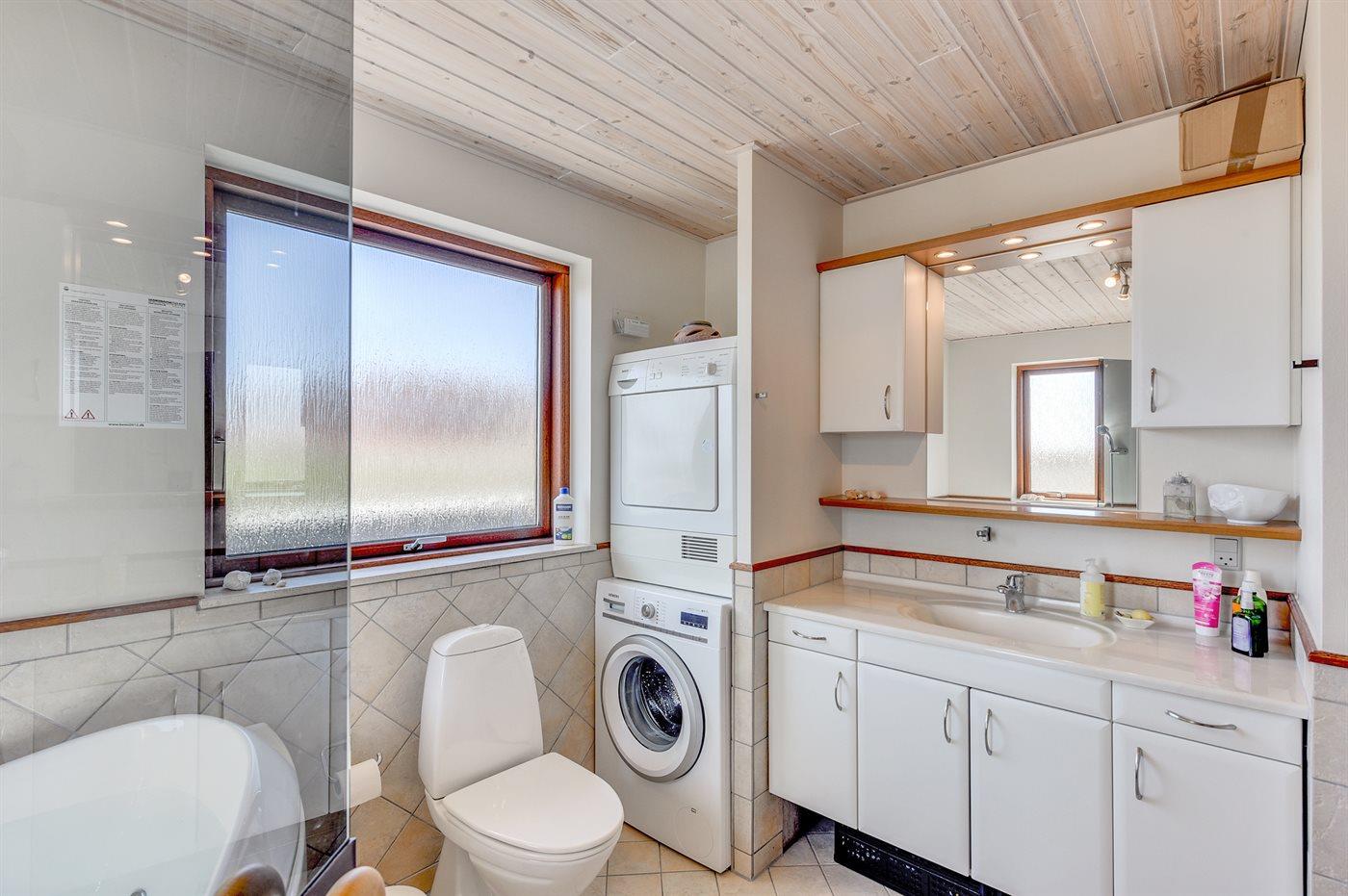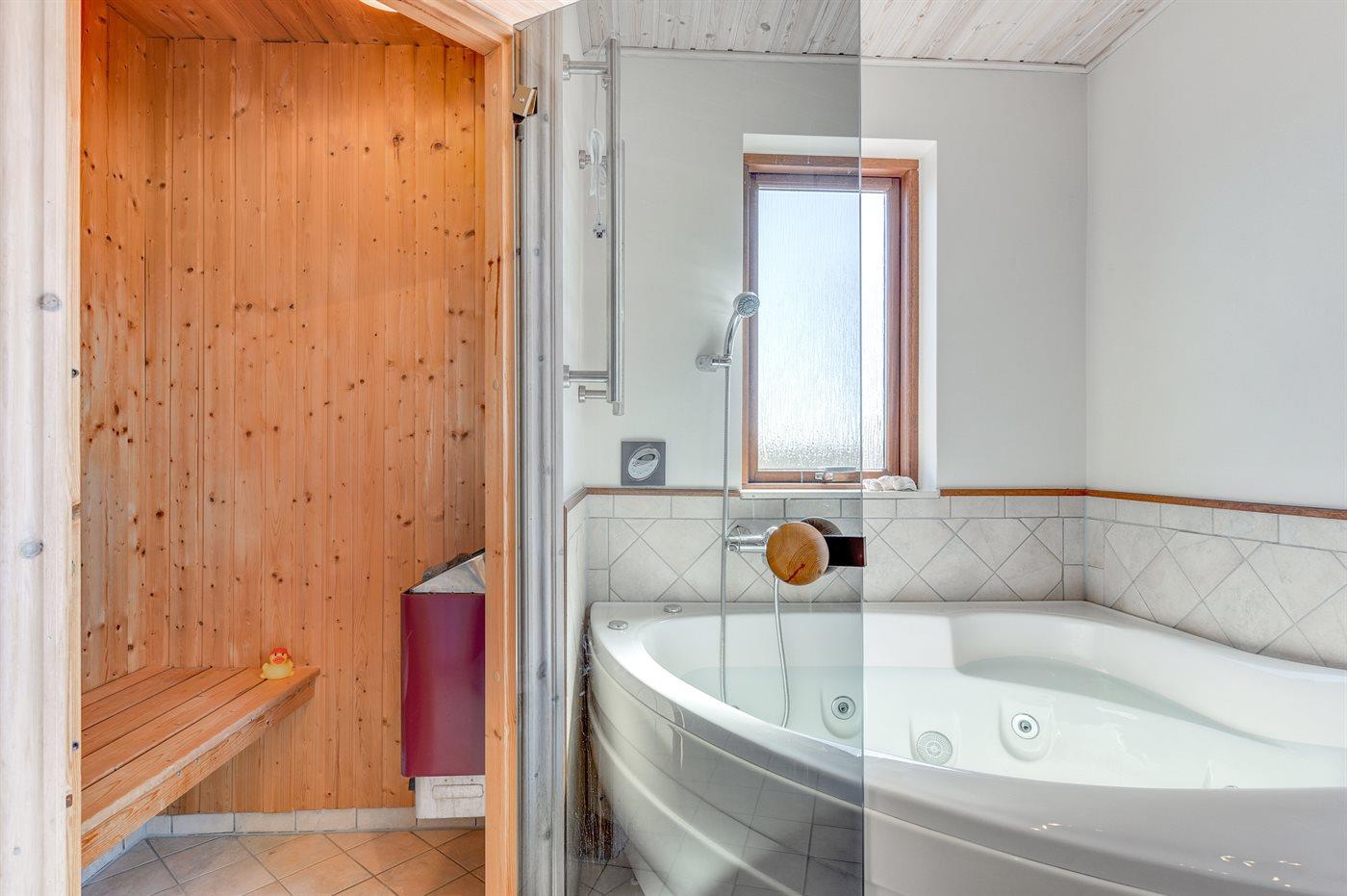 Der er 1 badeværelse med bruseniche og 2 toiletter, heraf 1 gæstetoilet. Der er gulvvarme på 1 badeværelse. Der er gulvvarme på gæstetoilettet. I saunaen er der mulighed for afslapning.
