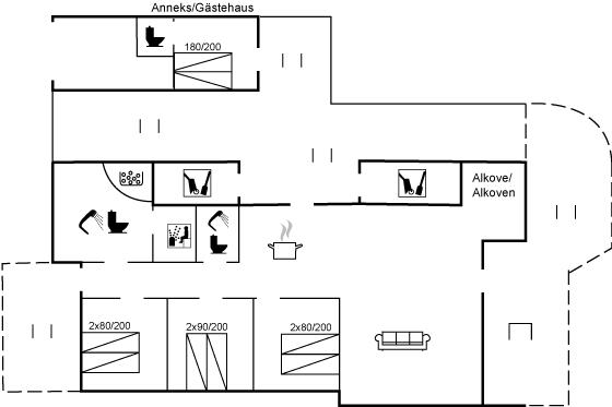 Der er i alt 4 soveværelser. Sovepladserne fordeler sig på: 8 sovepladser i enkeltsenge. 2 af disse sovepladser befinder sig i et anneks. Derudover er der 1 stk. barneseng.
