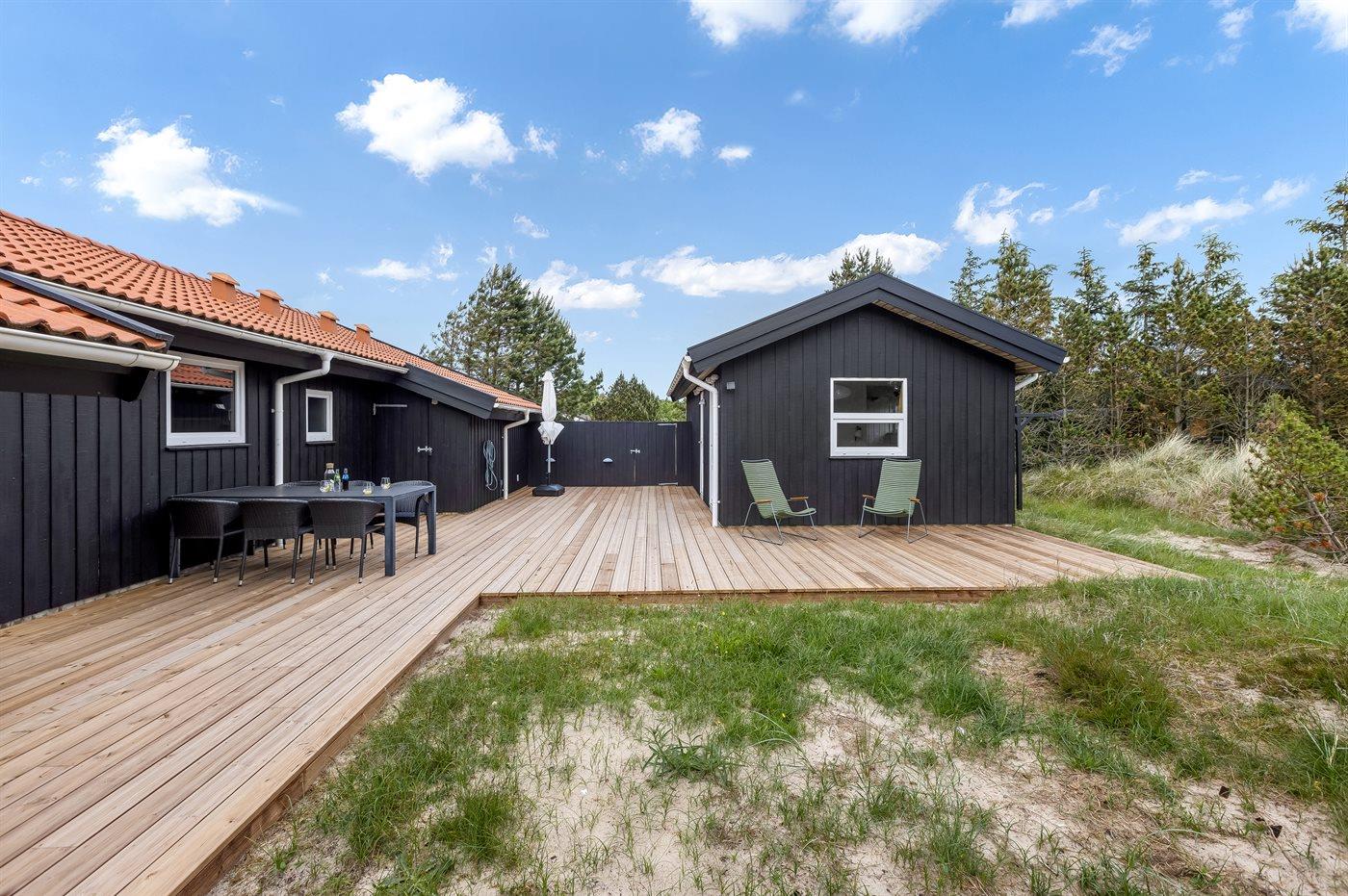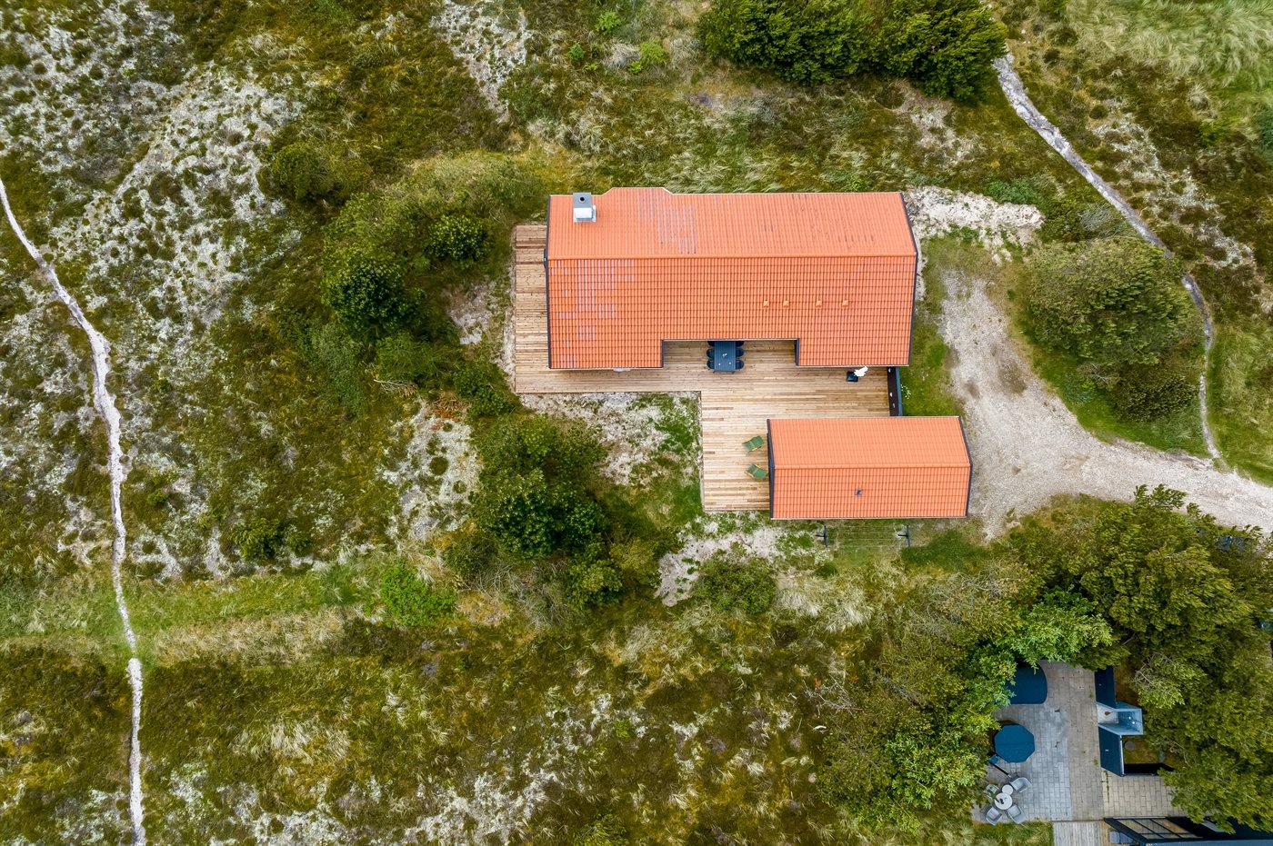 Ferieboligen er beliggende på en 1400 m² stor klitgrund. Der er 900 m til havet. Nærmeste forretning er beliggende i en afstand af 900 m. Der er en golfbane i en afstand af 6000 m. Til ferieboligen hører 110 m² terrasseareal. Der er redskabsrum. Grill til rådighed. Parkering ved ferieboligen.