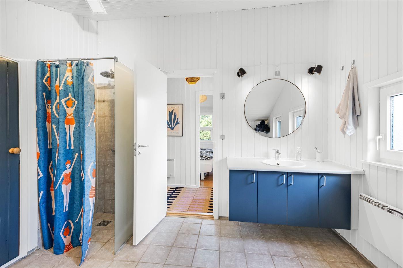 Der er 2 badeværelser med bruseniche og 3 toiletter, heraf 1 gæstetoilet. Der er gulvvarme på 2 badeværelser. I saunaen er der mulighed for afslapning.