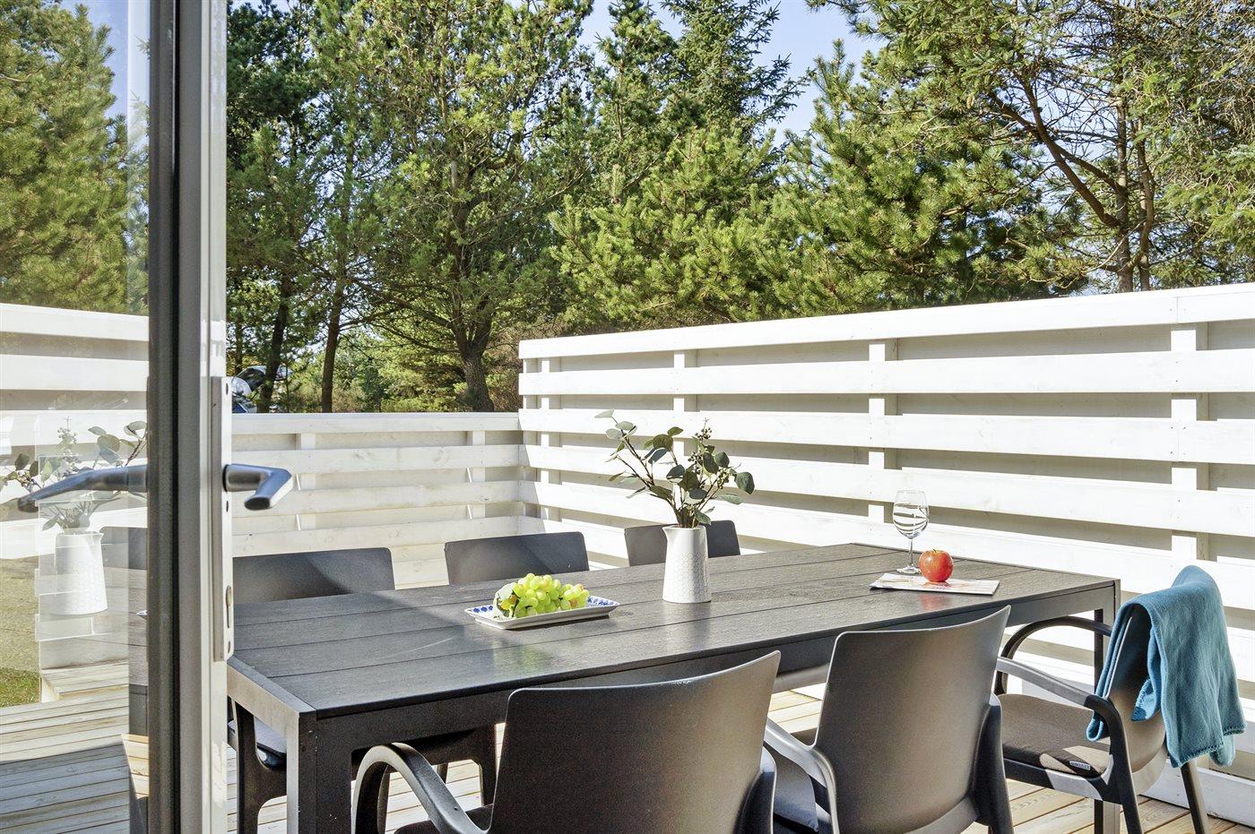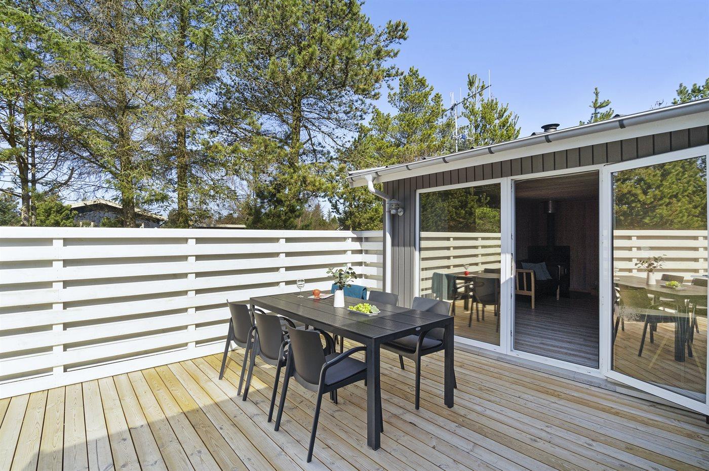 Hyggeligt træsommerhus med stor terrasse nær havet i Klitmøller, perfekt til familieferie.