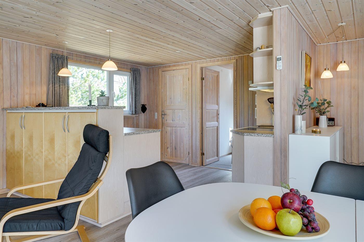 Sommerhuset egner sig til 6 personer. 2 af sovepladserne er kun egnet til større børn (4-11 år). Ferieboligen er på 80 m² og er bygget i 1973. I 2005 gennemgik ferieboligen en delvis renovering. Det er ikke tilladt at medbringe husdyr. Ferieboligen er udstyret med energibesparende varmepumpe. Ferieboligen har vaskemaskine. Frysekapacitet på 30 liter. Der er desuden brændeovn. Til de små er der 1 stk. barnestol.