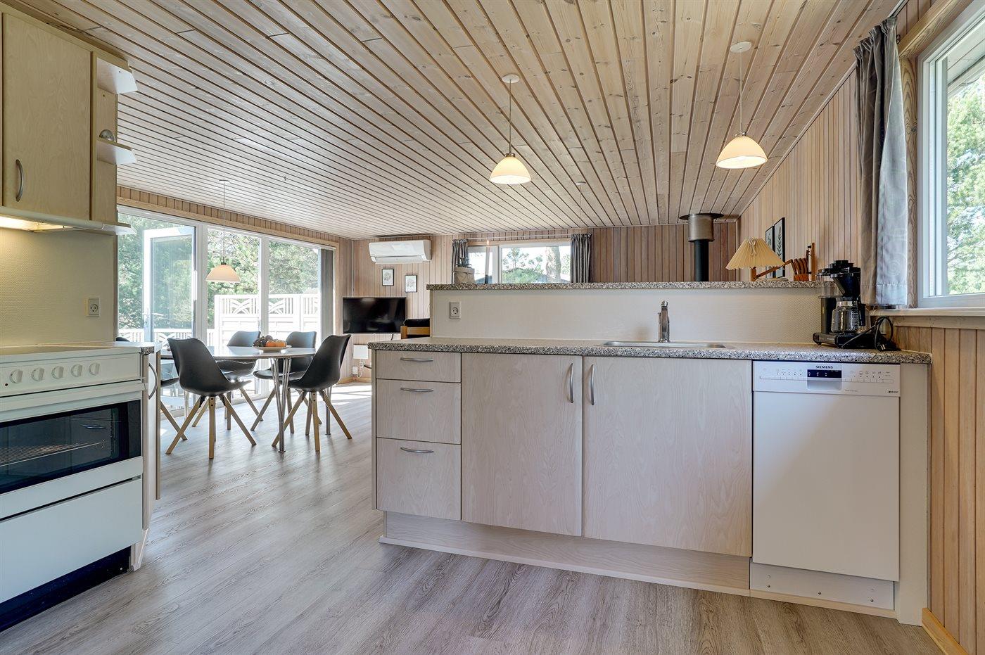 Køkkenet er udstyret med 1 køleskab. Der er 4 keramiske kogeplader, varmluftovn, mikrobølgeovn samt opvaskemaskine.