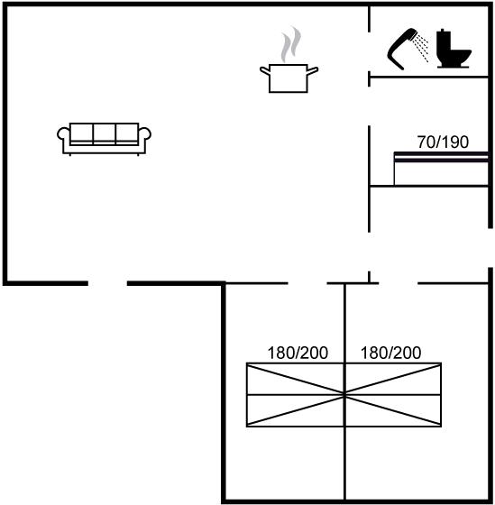 Der er i alt 3 soveværelser. Sovepladserne fordeler sig på: 4 sovepladser i dobbeltsenge. 2 sovepladser i køjeseng.