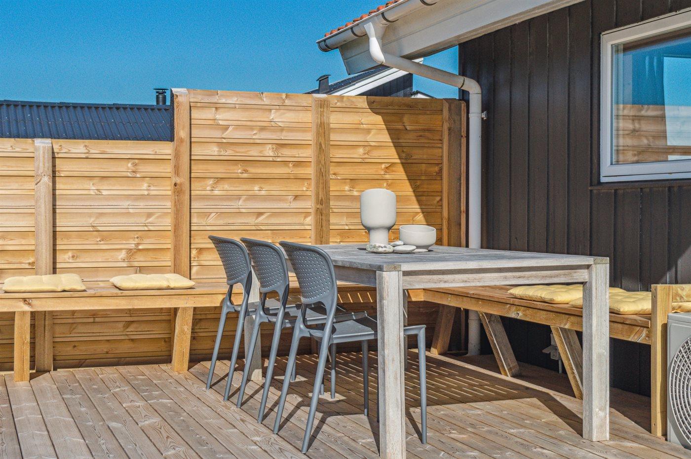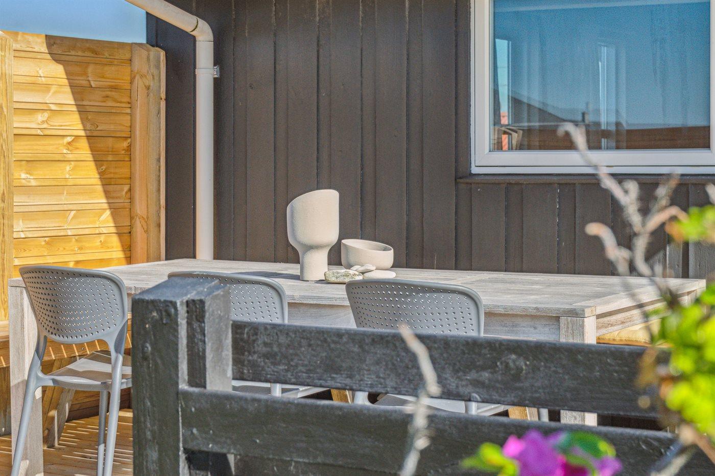 Ferieboligen er beliggende på en 750 m² stor naturgrund. Der er 200 m til havet. Nærmeste forretning er beliggende i en afstand af 1000 m. Til ferieboligen hører 40 m² terrasseareal. Der er redskabsrum. Grill til rådighed. Parkering ved ferieboligen.