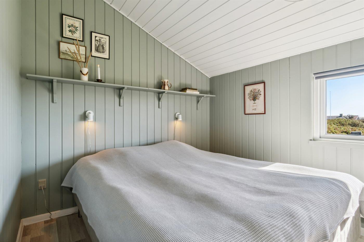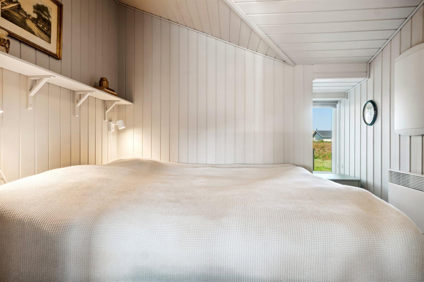 Der er i alt 3 soveværelser. Sovepladserne fordeler sig på: 4 sovepladser i dobbeltsenge. 2 sovepladser i enkeltsenge. 2 sovepladser i alkove. Derudover er der 1 stk. barneseng.