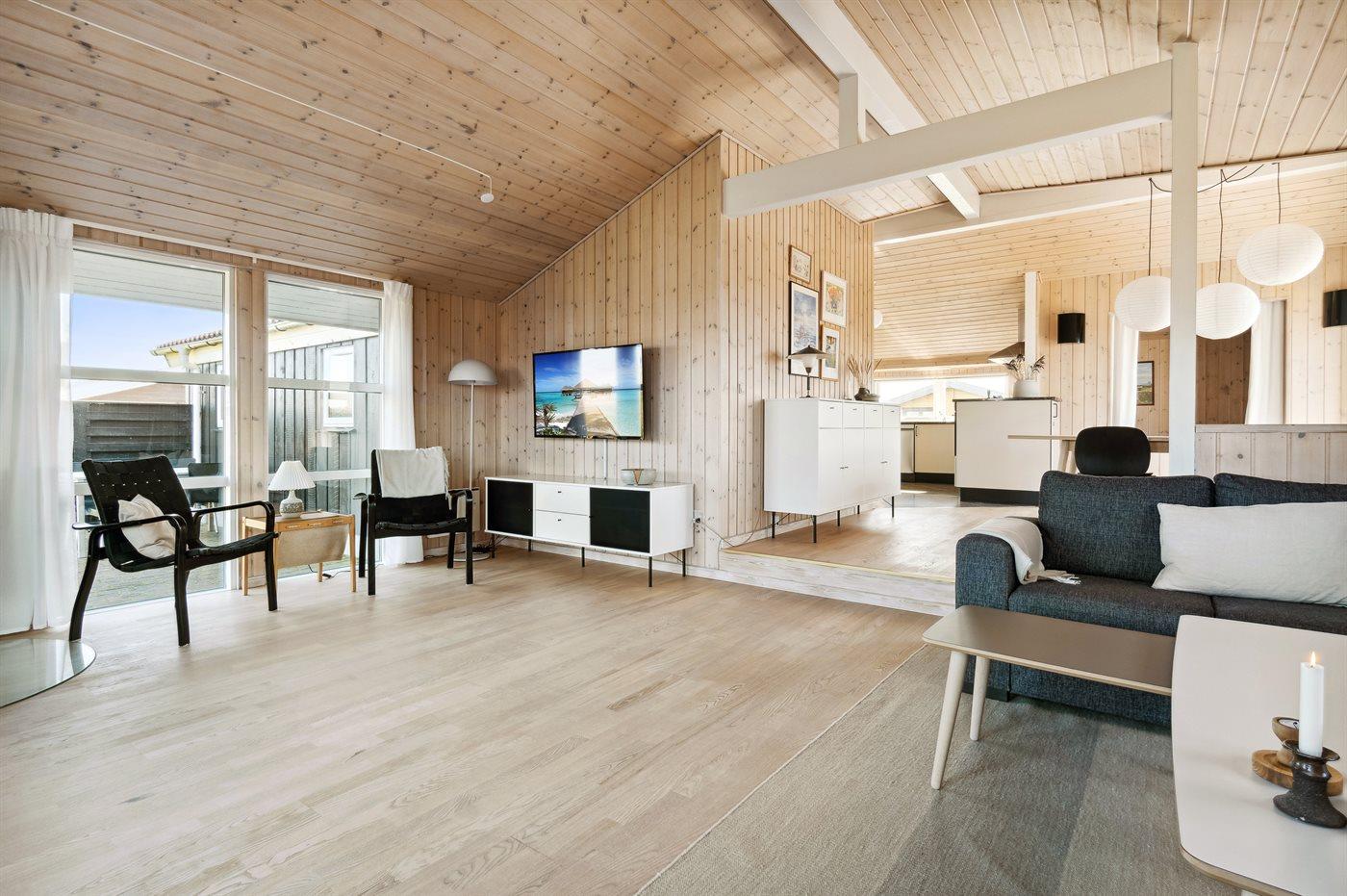 Tæt ved Klitmøllers bedste badestrand ligger dette velholdte og veludstyrede sommerhus. Udover de 3 soveværelser findes der 2 sovepladser i alkove i stuen.