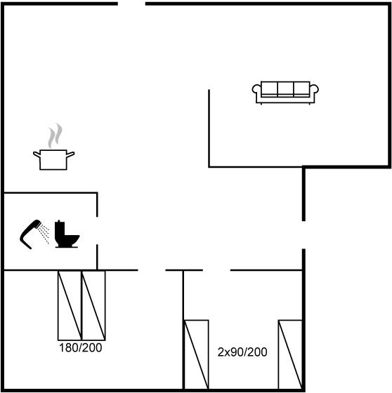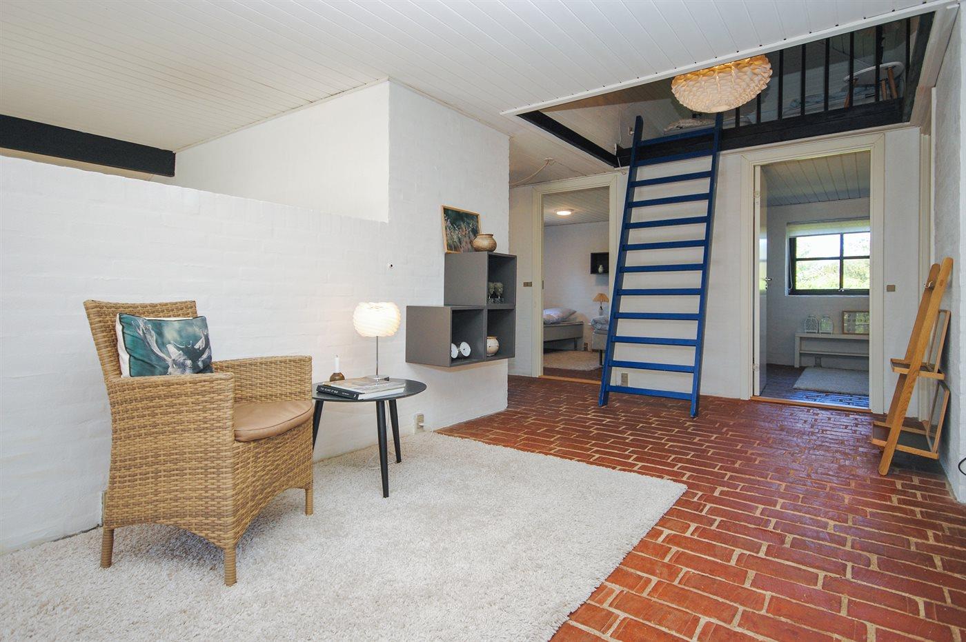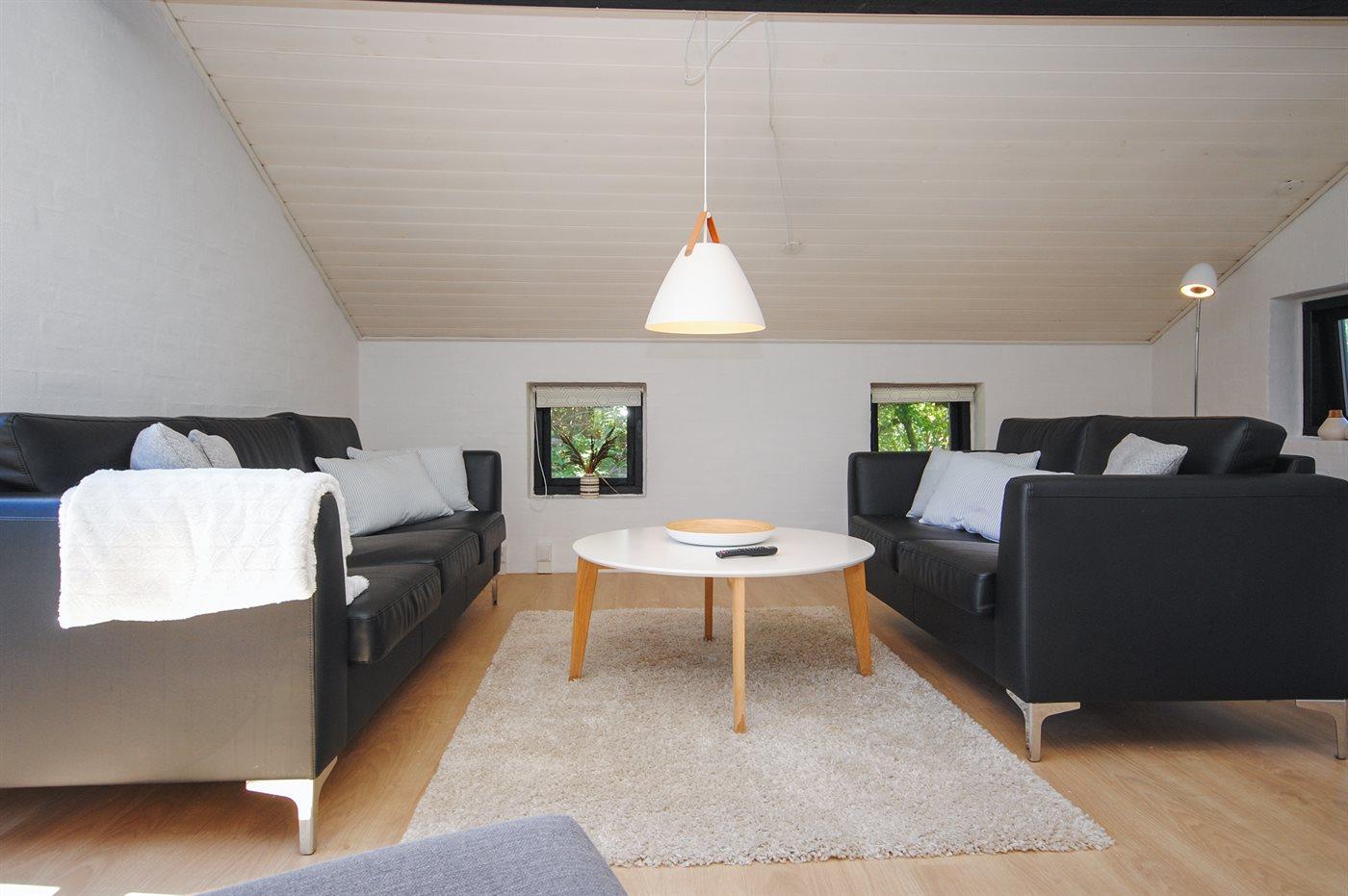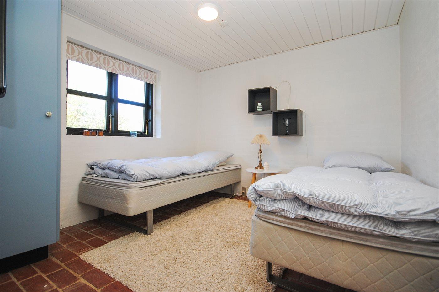 Der er i alt 2 soveværelser. Sovepladserne fordeler sig på: 2 sovepladser i dobbeltseng. 4 sovepladser i enkeltsenge. 2 af disse sovepladser befinder sig på husets hems.