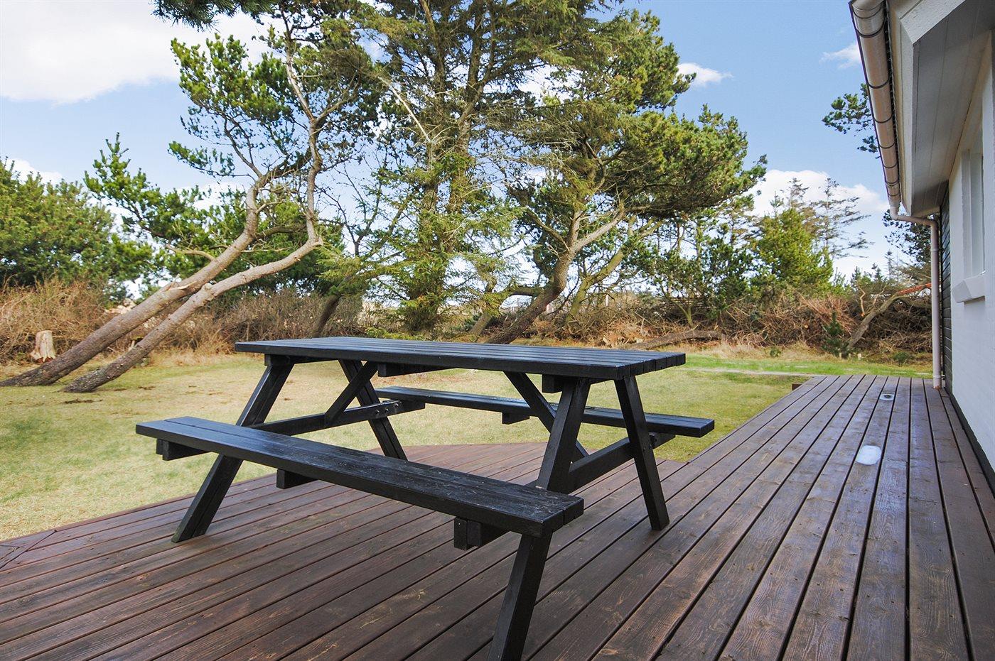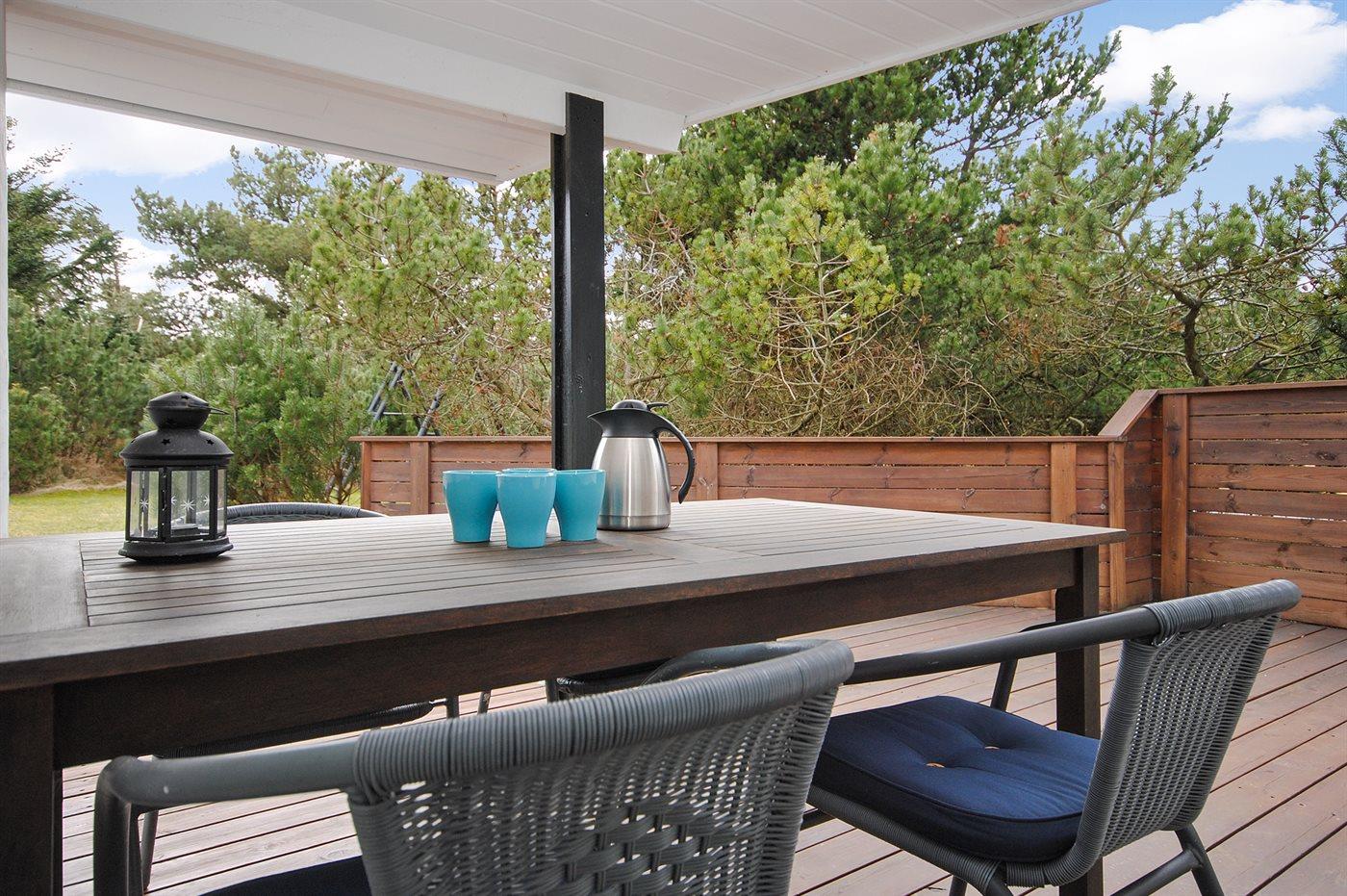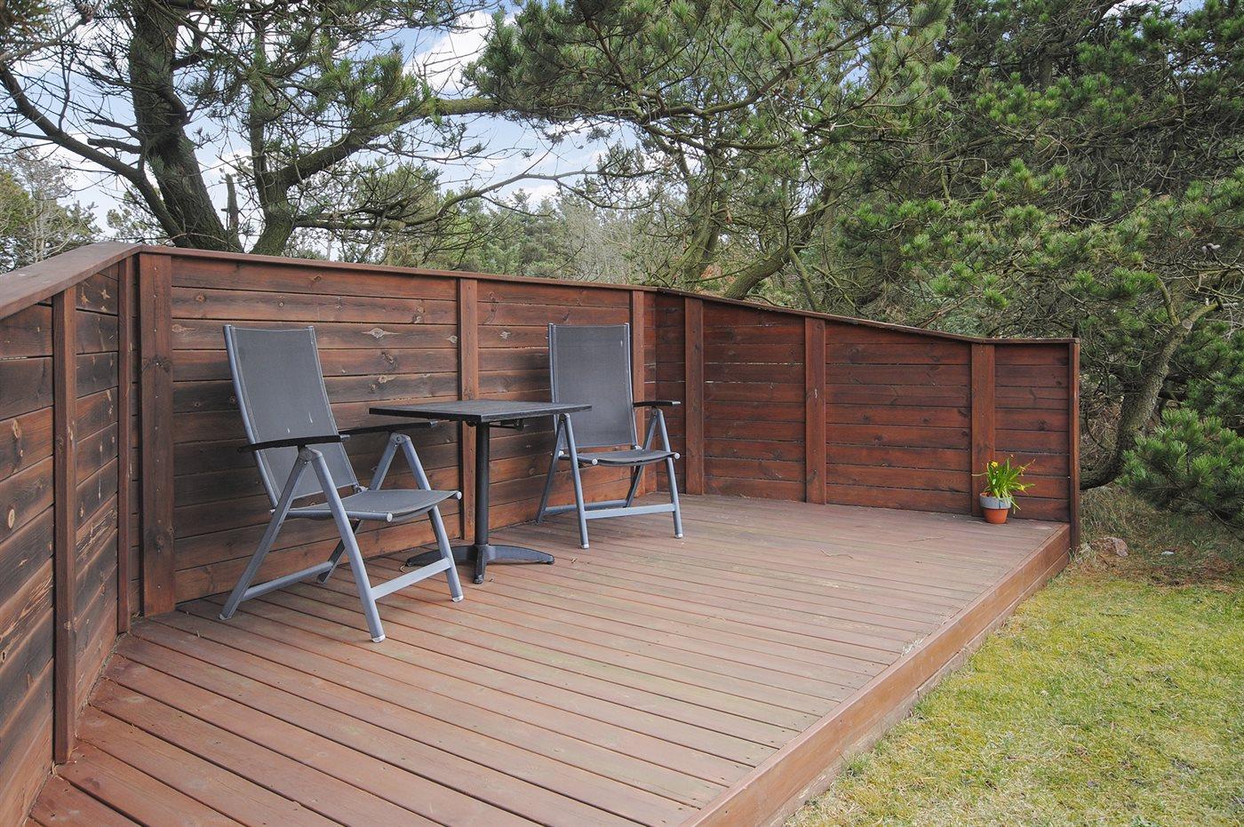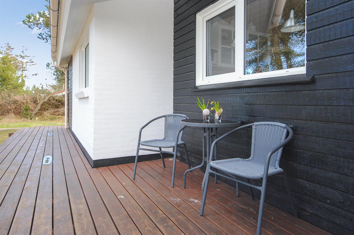Ferieboligen er beliggende på en 1200 m² stor naturgrund. Der er 500 m til havet. Nærmeste forretning er beliggende i en afstand af 1000 m. Til ferieboligen hører 75 m² terrasseareal. Desuden er der 25 m² overdækket terrasse. Der er redskabsrum. Fodboldmål. Der er 2 grill til rådighed.
